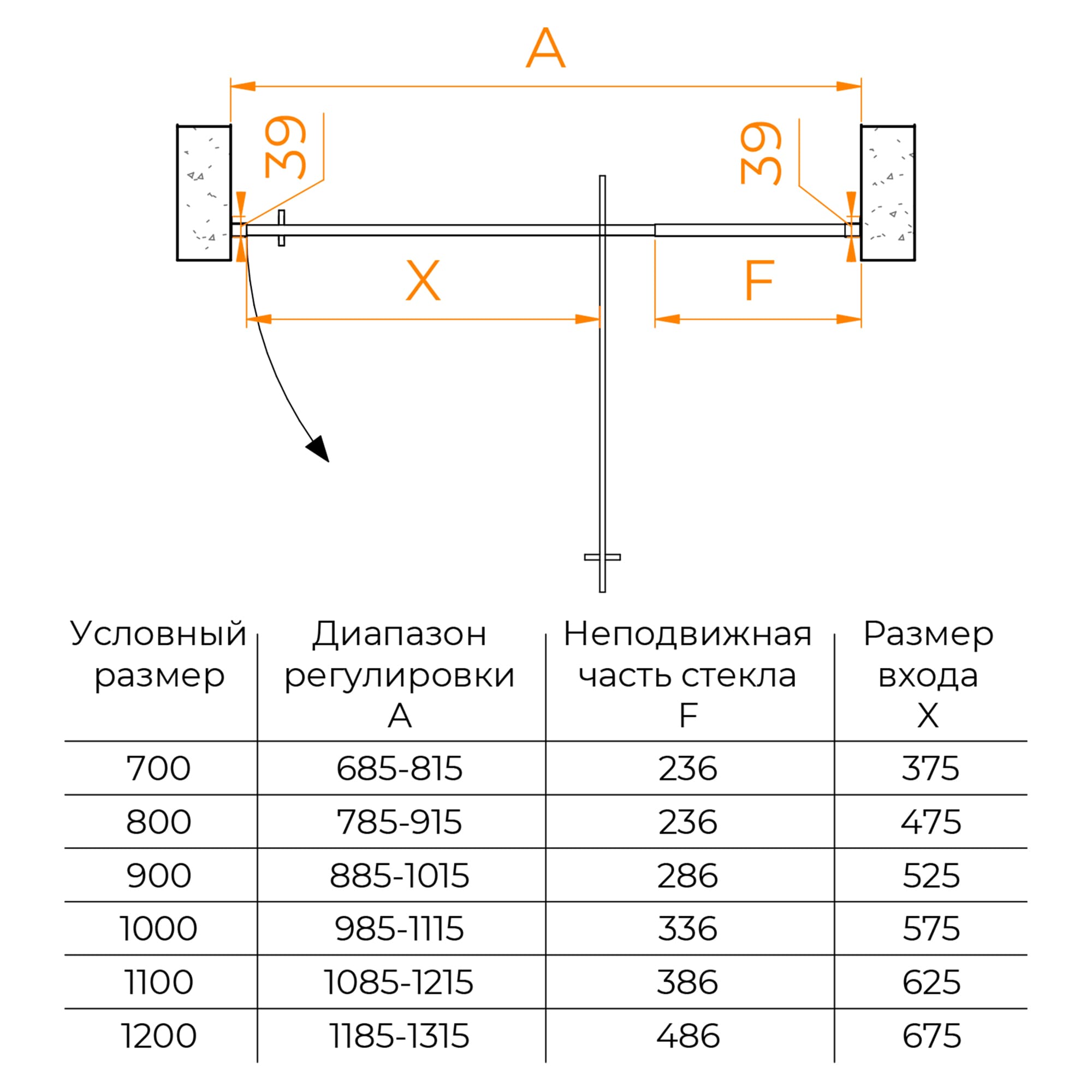 Размеры с диапазоном регулировок
