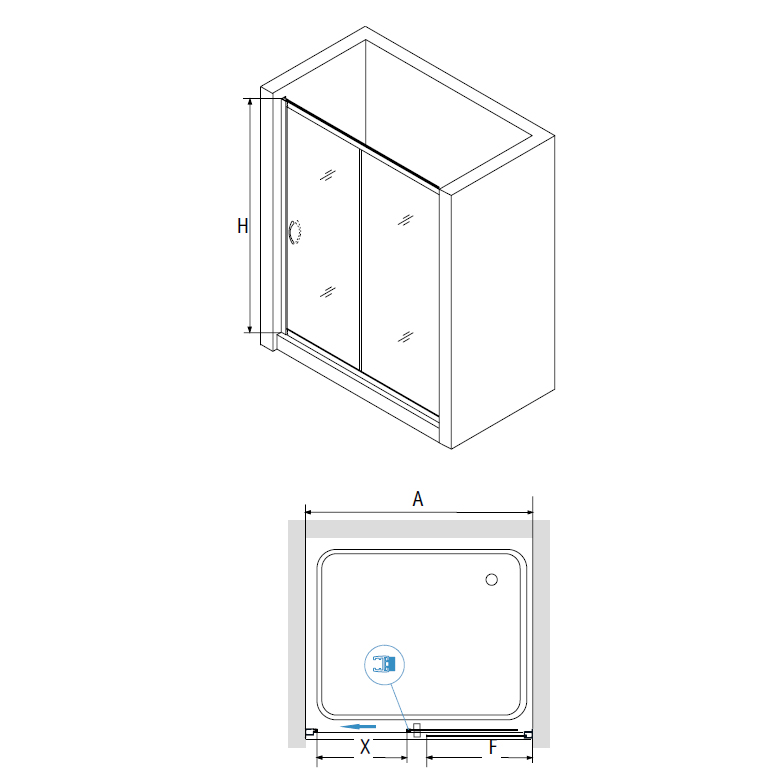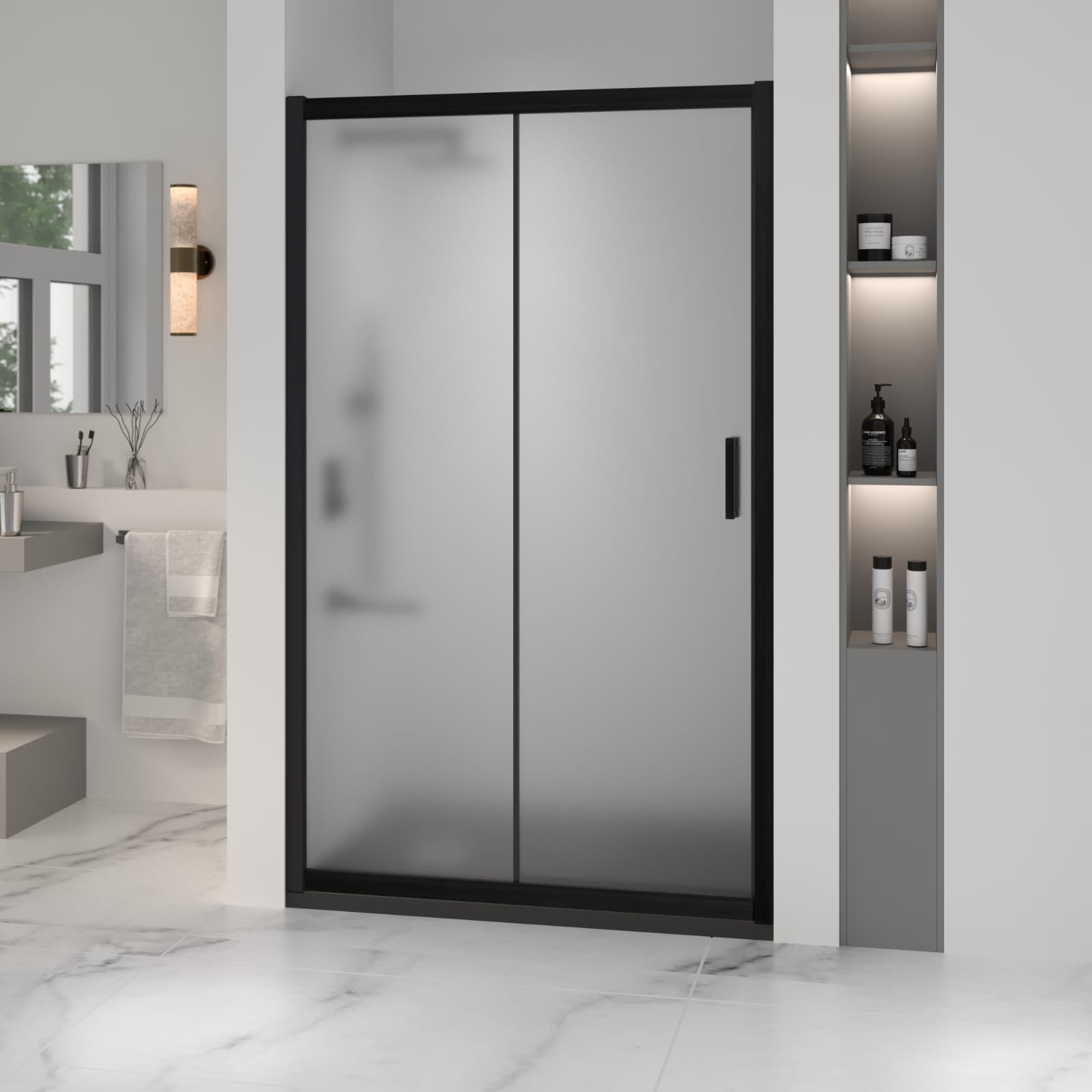 Душевая дверь состоит из 2-х секций, одно неподвижное стекло и раздвижная дверь от стены. Раздвижные двери придают легкость и изящество, а также максимальный комфорт во время гигиенических процедур. Толщина стекла 6 мм-стабильное и надежное ежедневное использование. Технология Easy Clean защищает поверхности и избавляет от известкового налета.