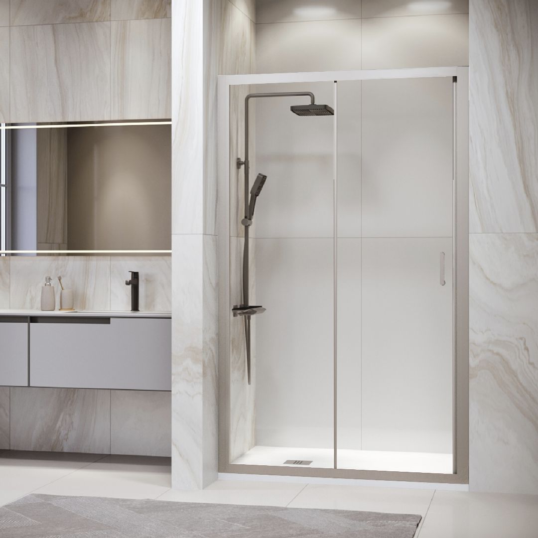Душевая дверь раздвижная RGW PA-14. Ручка скоба из цинкового сплава, двойные верхние ролики. двойные отстегивающиеся нижние ролики, крышки верхнего профиля. Трап или поддон приобретается отдельно.