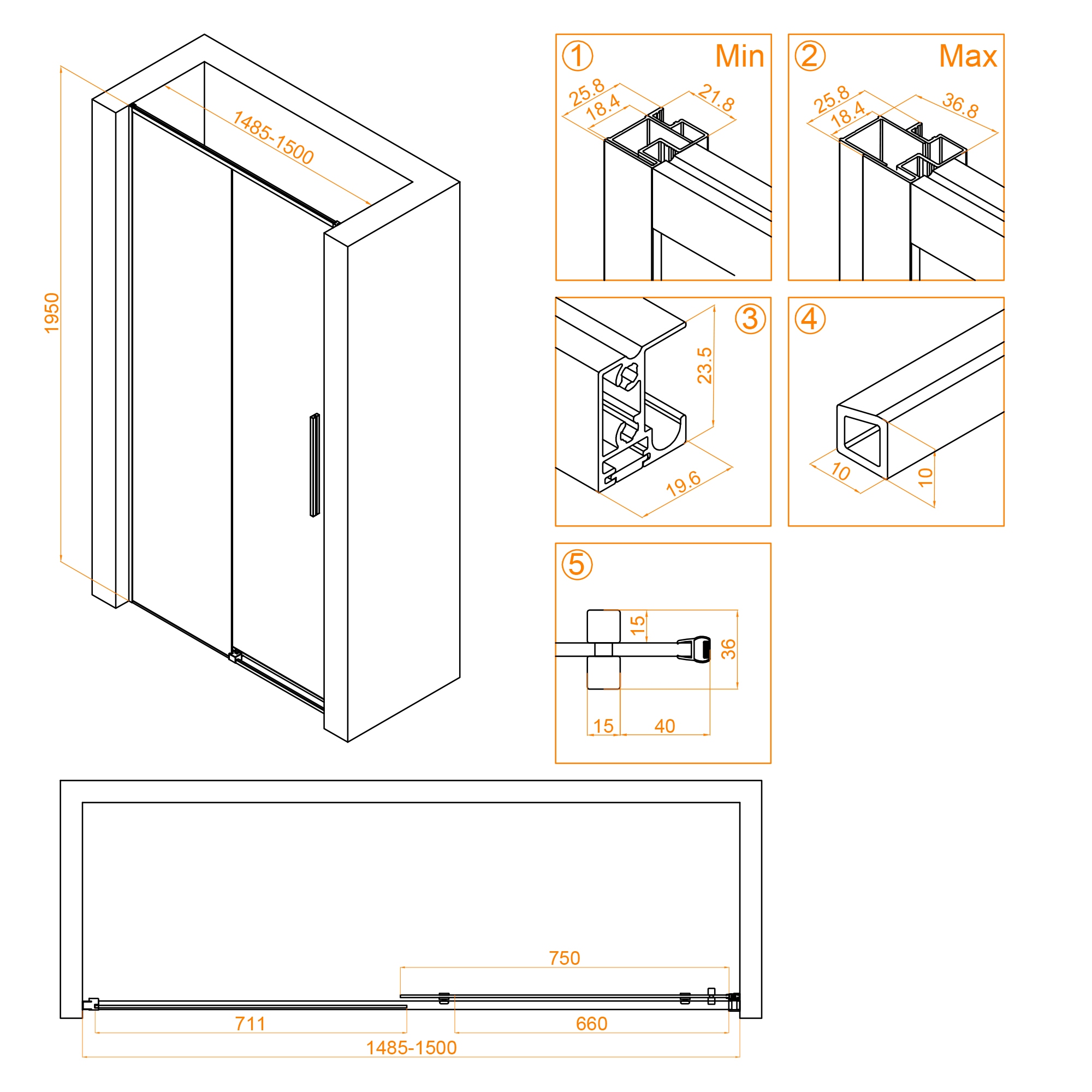 Душевая дверь раздвижная на роликах от стены. Трап или поддон приобретается отдельно.