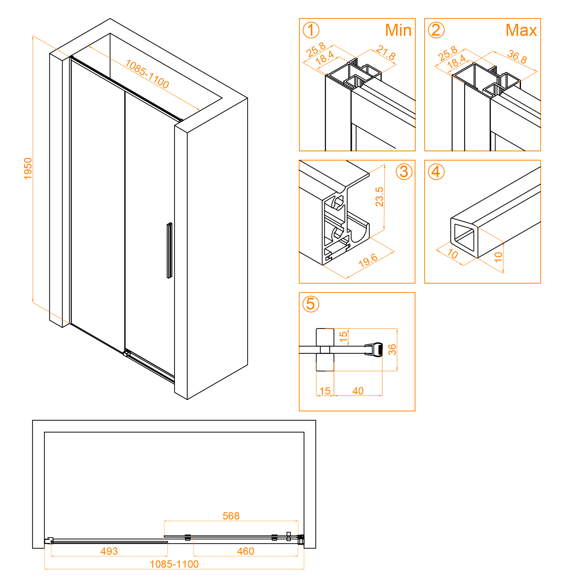 Душевая дверь раздвижная на роликах от стены. Трап или поддон приобретается отдельно.