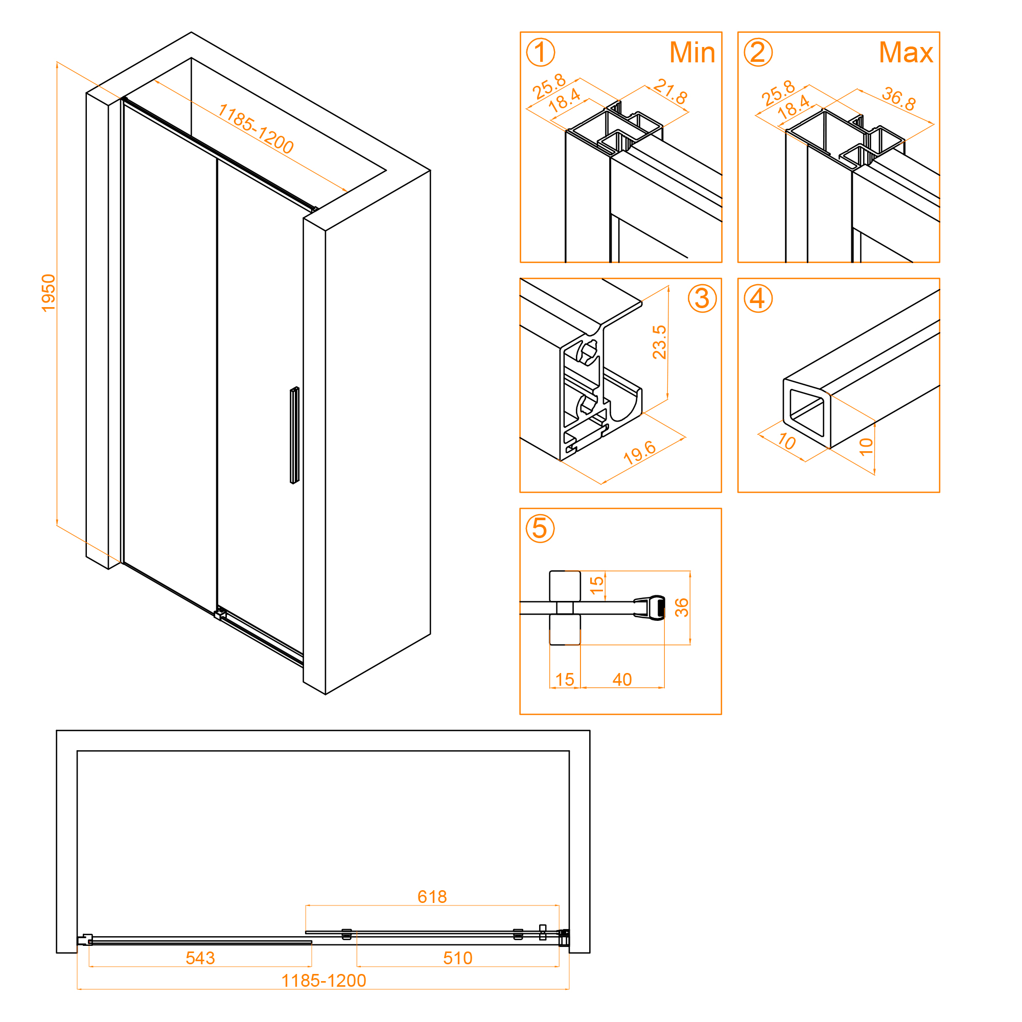 Душевая дверь раздвижная на роликах от стены. Трап или поддон приобретается отдельно.
