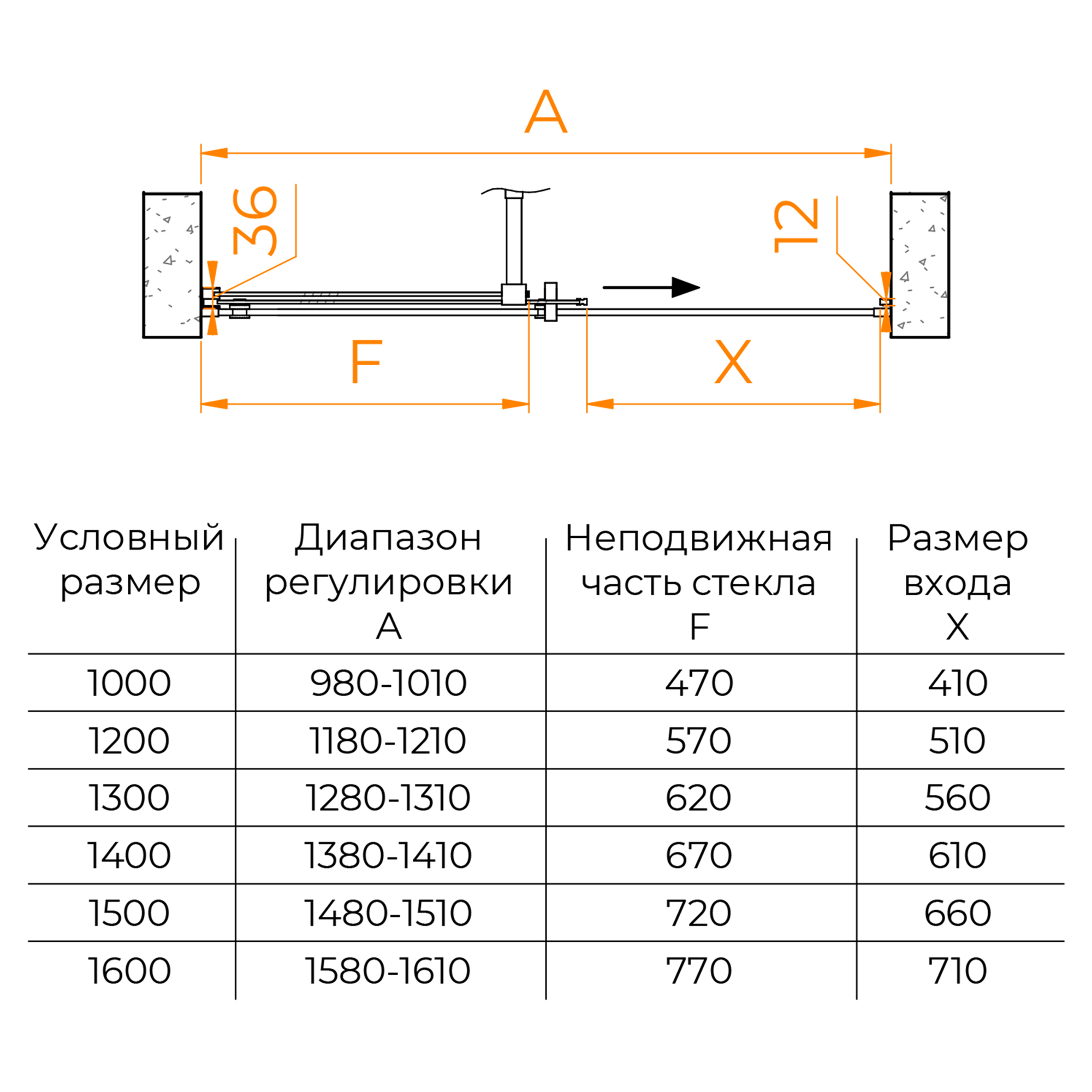 Размеры с диапазоном регулировок