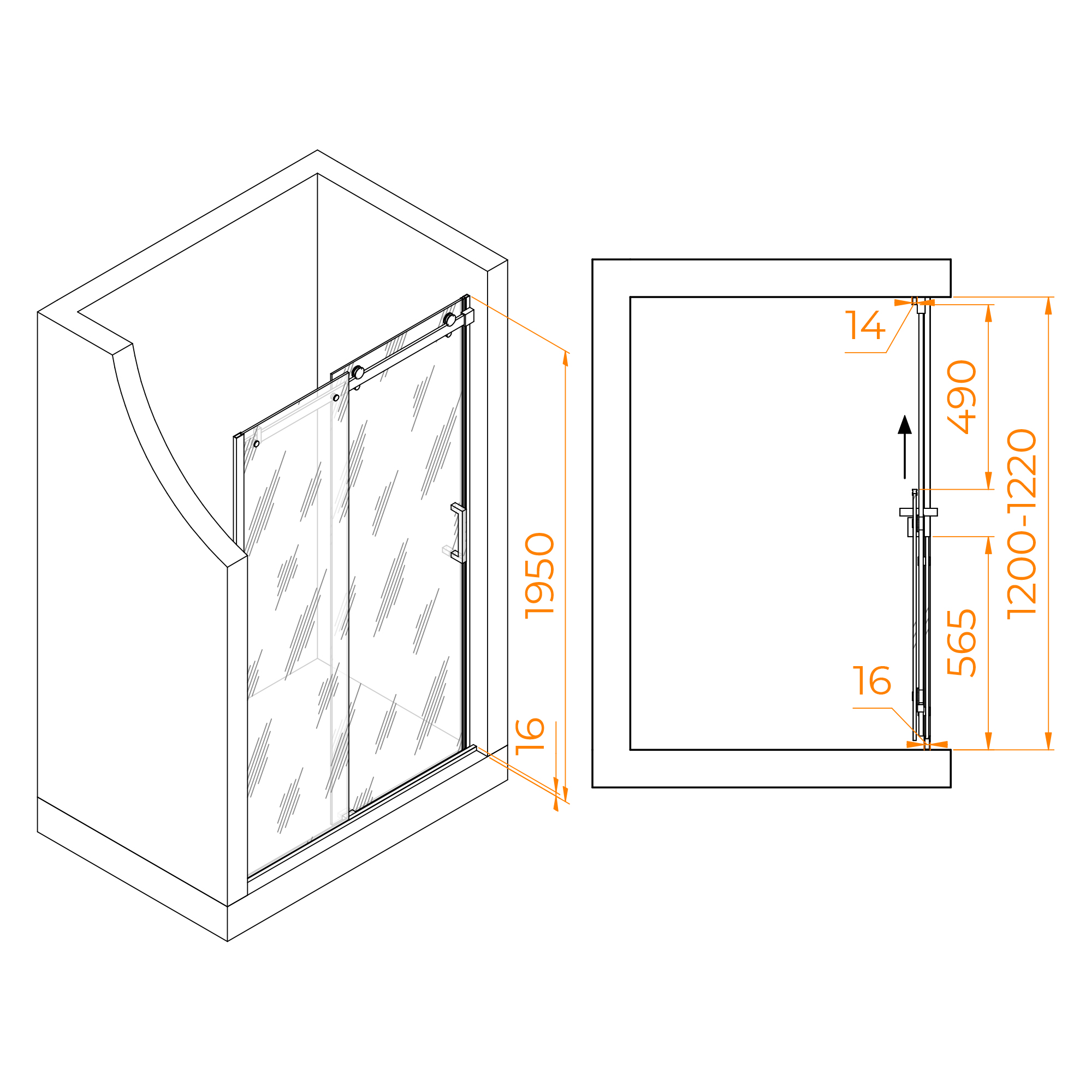 Душевая дверь раздвижная на роликах. В комплекте нижняя пороговая планка. Магнитный уплотнитель двери. Трап или поддон приобретается отдельно.