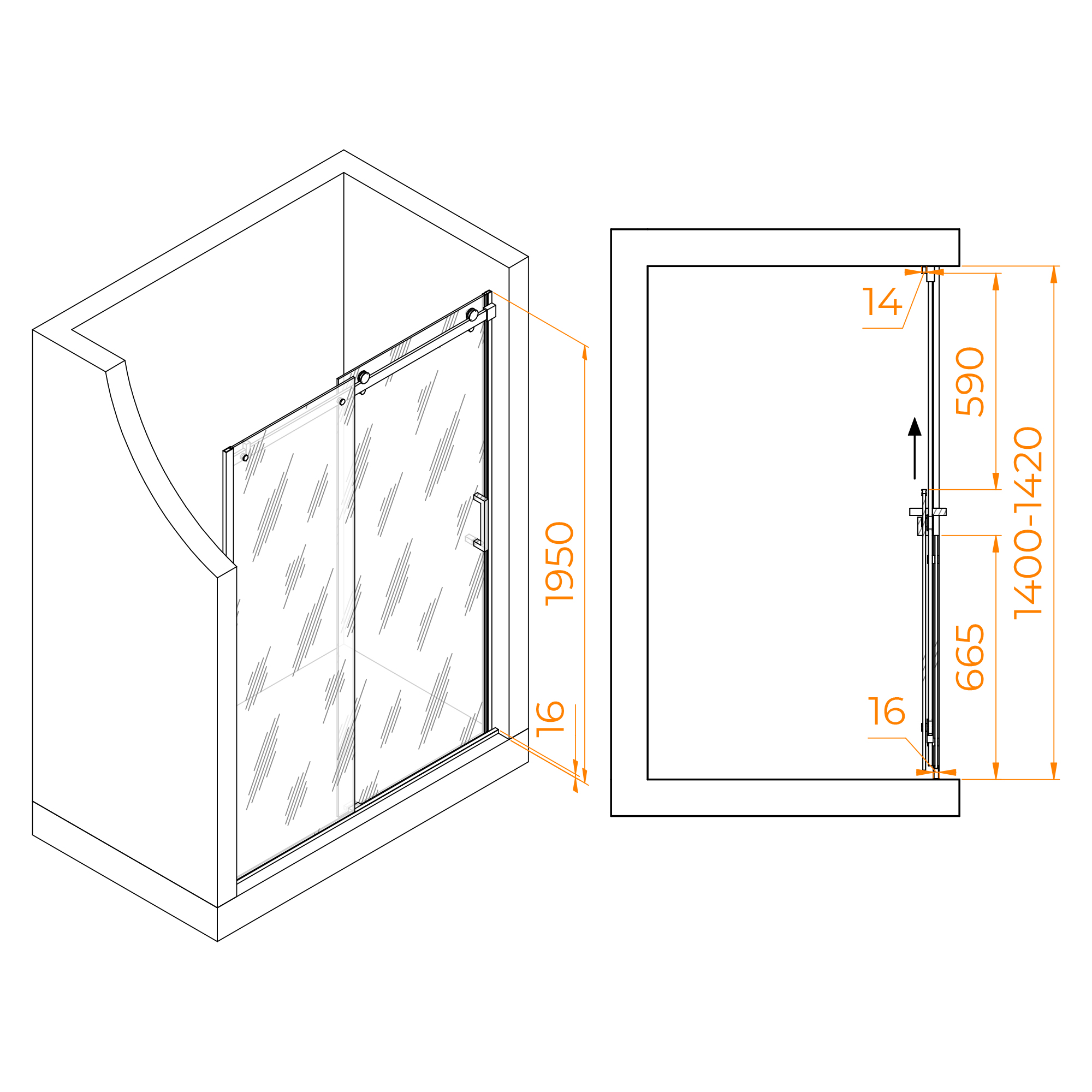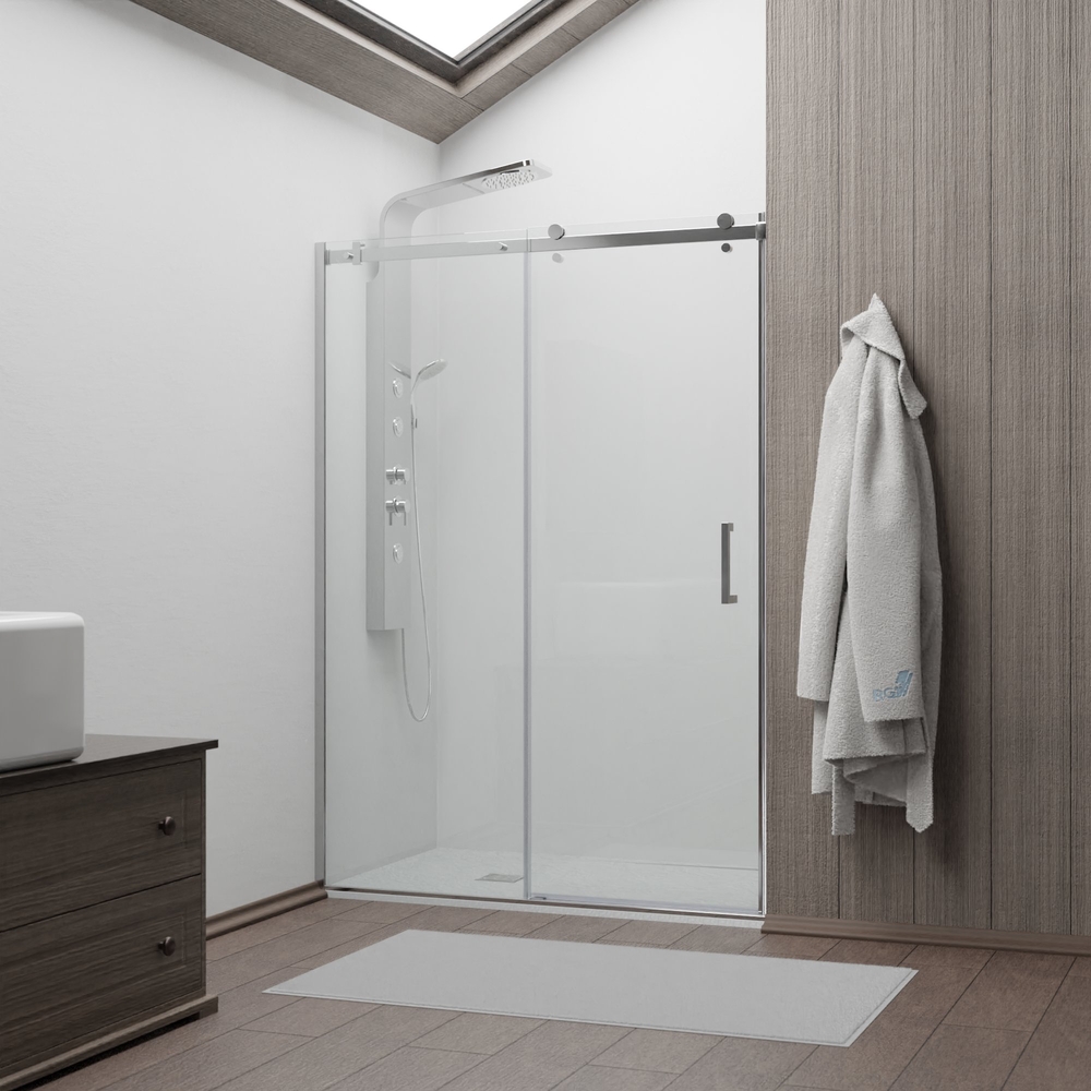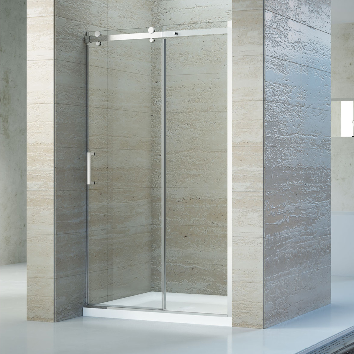 Душевая дверь раздвижная на роликах. В комплекте нижняя пороговая планка. Магнитный уплотнитель двери. Трап или поддон приобретается отдельно.