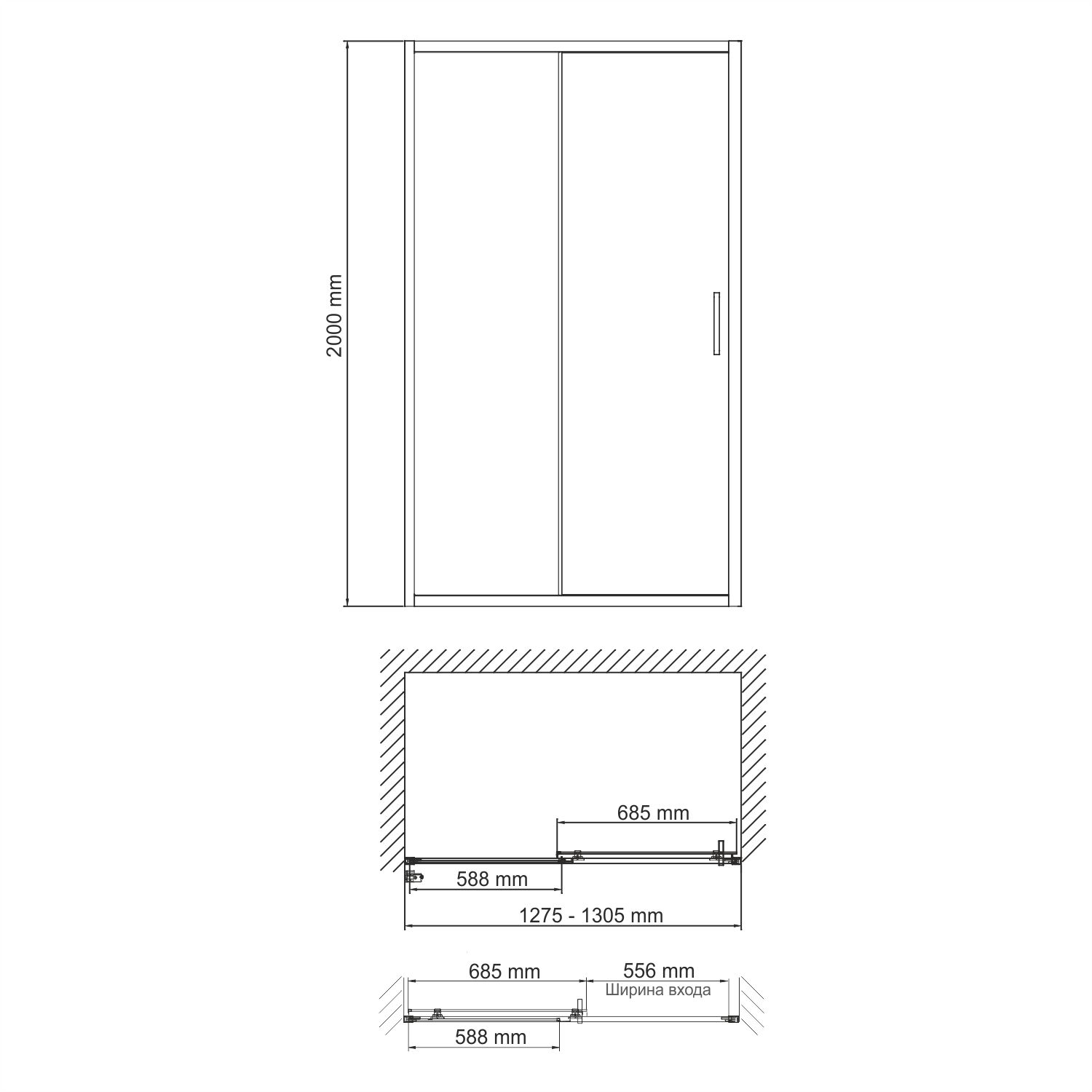 4) Регулирующий профиль до 15 мм - Возможность регулировки бокового профиля позволяет компенсировать неровности стен и настроить размер душевой двери под индивидуальный интерьер.