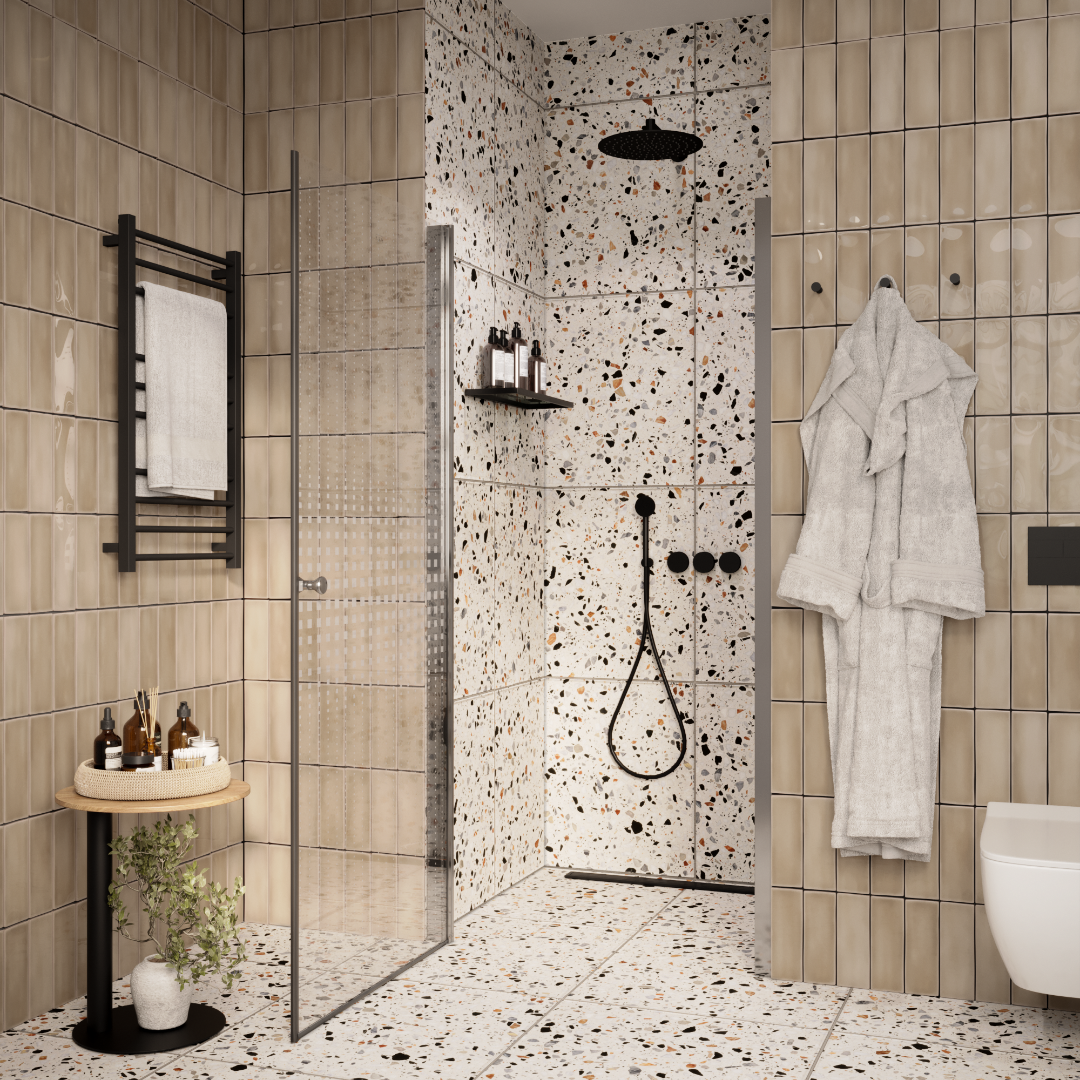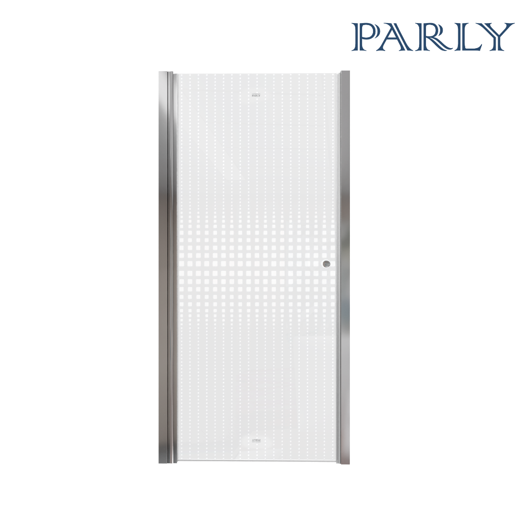 Распашная дверь образует вход комфортной ширины. Модель из прозрачного закаленного стекла (5 мм) с дизайнерским рисунком. Полотно устойчиво к случайным ударам. В случае битья, стекло рассыпается на множество мелких граней с тупыми концами.Алюминиевый полированный хромированный профиль не деформируется при высокой влажности и смене температуры. Хромированные петли и ручка устойчивы к образованию коррозии.Достоинства душевой двери:Защищает ванную комнату от брызг воды. Пол возле душевой зоны остается сухим, что снижает шансы поскользнуться после водных процедур.Душевая дверь помогает зонировать помещение на отдельные функциональные участки. Особенно это актуально для совмещенного санузла и небольших ванных комнат.Двери из стекла практичны, долговечны и гигиеничны. На стеклянной поверхности не скапливаются бактерии и грязь, полотно легко чистить.Дизайн двери дополнит стилистическую задумку оформления ванной.При правильном уходе душевая дверь долгие годы сохраняет эстетический внешний вид. Для чистки необходимо использовать мягкие губки и салфетки, специальные жидкие чистящие средства.Нельзя использовать жесткие губки и абразивные порошки, которые оставляют мелкие царапины. Как результат, в них скапливается грязь и размножаются бактерии. Поэтому важно правильно чистить стеклянные поверхности.