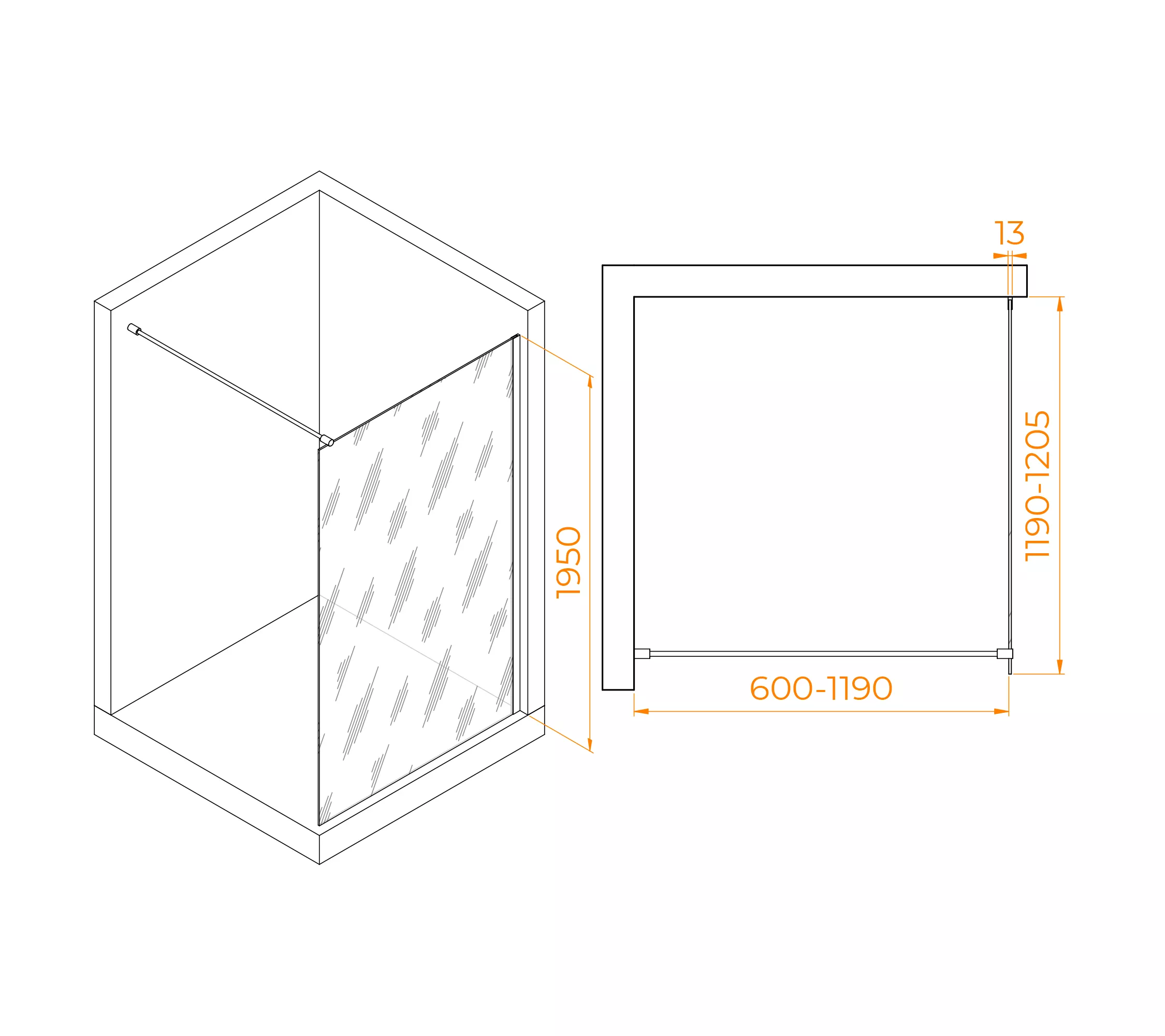 Душевая перегородка неподвижная. Длина кронштейна 1024 мм. Трап или поддон приобретается отдельно.