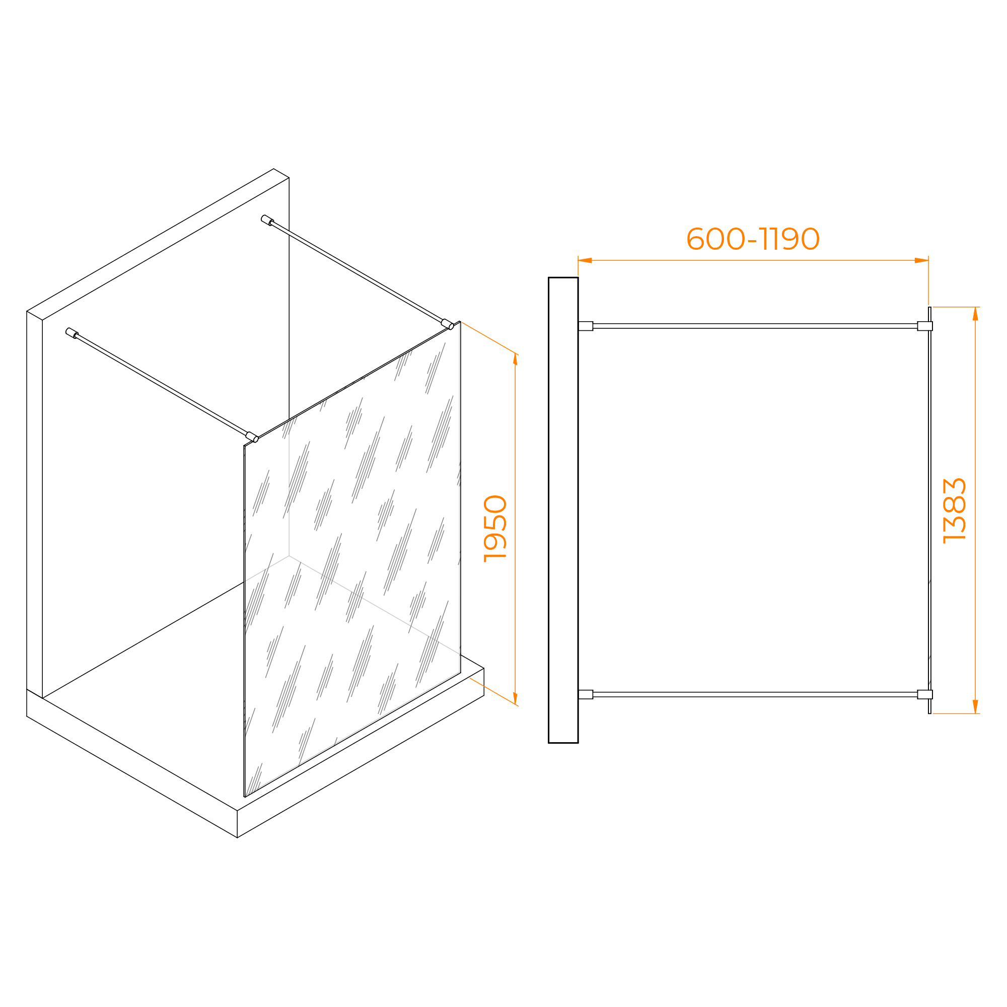 Дополнительно:душевая перегородка стационарная. Два кронштейна RGW O-202CP длинной 730-1200 мм.Трап или поддон приобретаются отдельно.