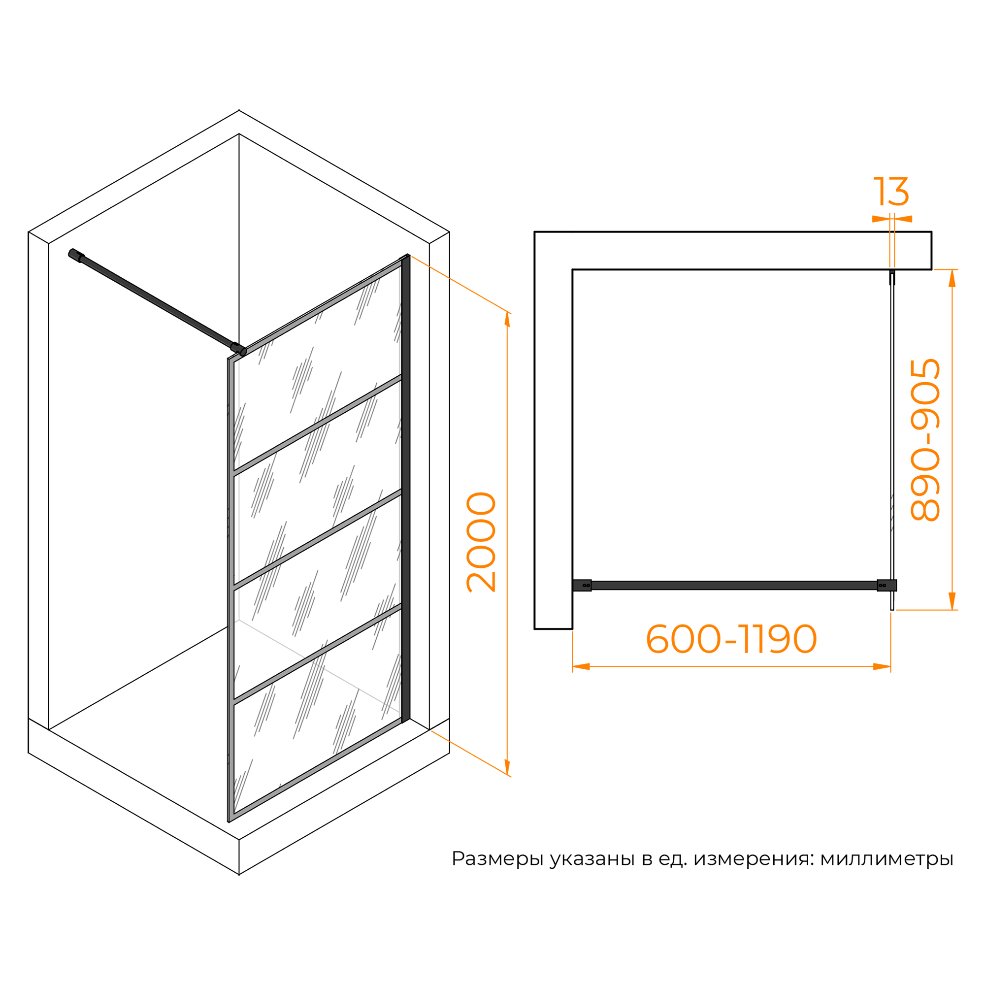 Профиль, выполненный из анодированного алюминия ALUSTRONG MAX, гарантирует долговечность и устойчивость к коррозии. Черная керамическая краска, нанесенная методом шелкографии. Стильный рисунок: горизонтальные линии и по периметру стекла, добавляет изысканный акцент и современный вид.3 класс герметичности гарантирует, что вода останется там, где она должна быть, сводя к минимуму риск любого повреждения водой пола в ванной комнате.