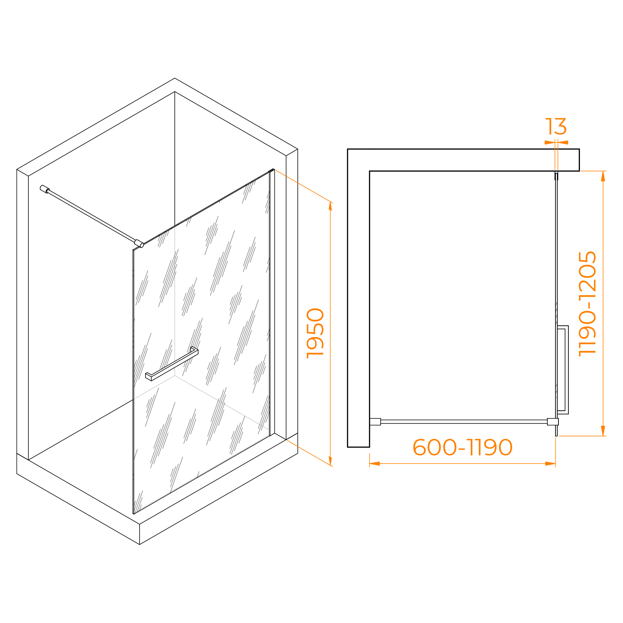 Дополнительно: душевая перегородка неподвижная. Длина кронштейна 1200 мм. Трап или поддон приобретается отдельно.