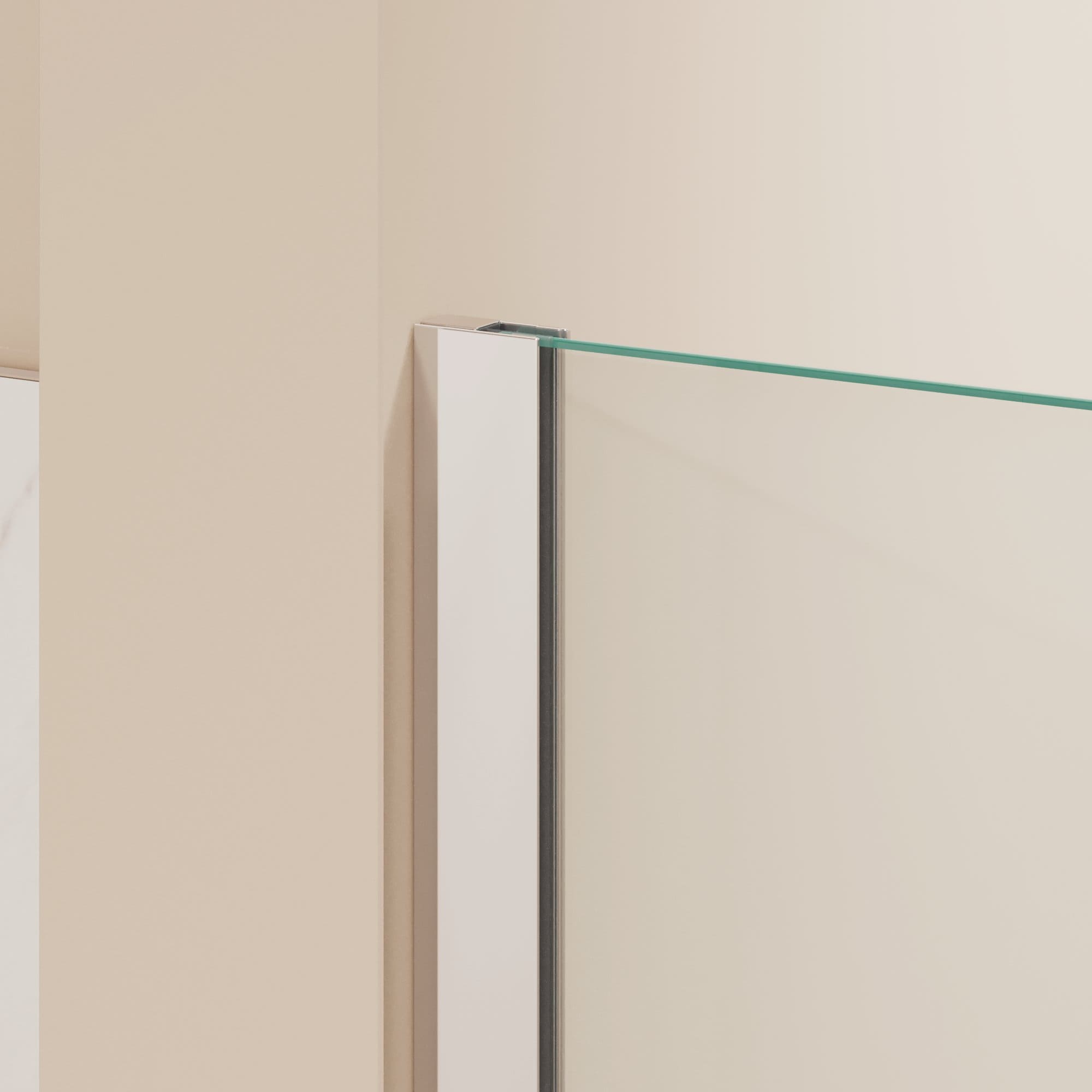 Душевая перегородка состоит из стационарного полотна и полотна с поворотной маятниковой частью - 300 мм. Стационарное стекольное полотно крепится к стене алюминиевым профилем с декоративной заглушкой. Подвижное полотно закреплено стальной маятниковой петлей с ходом 180 градусов.