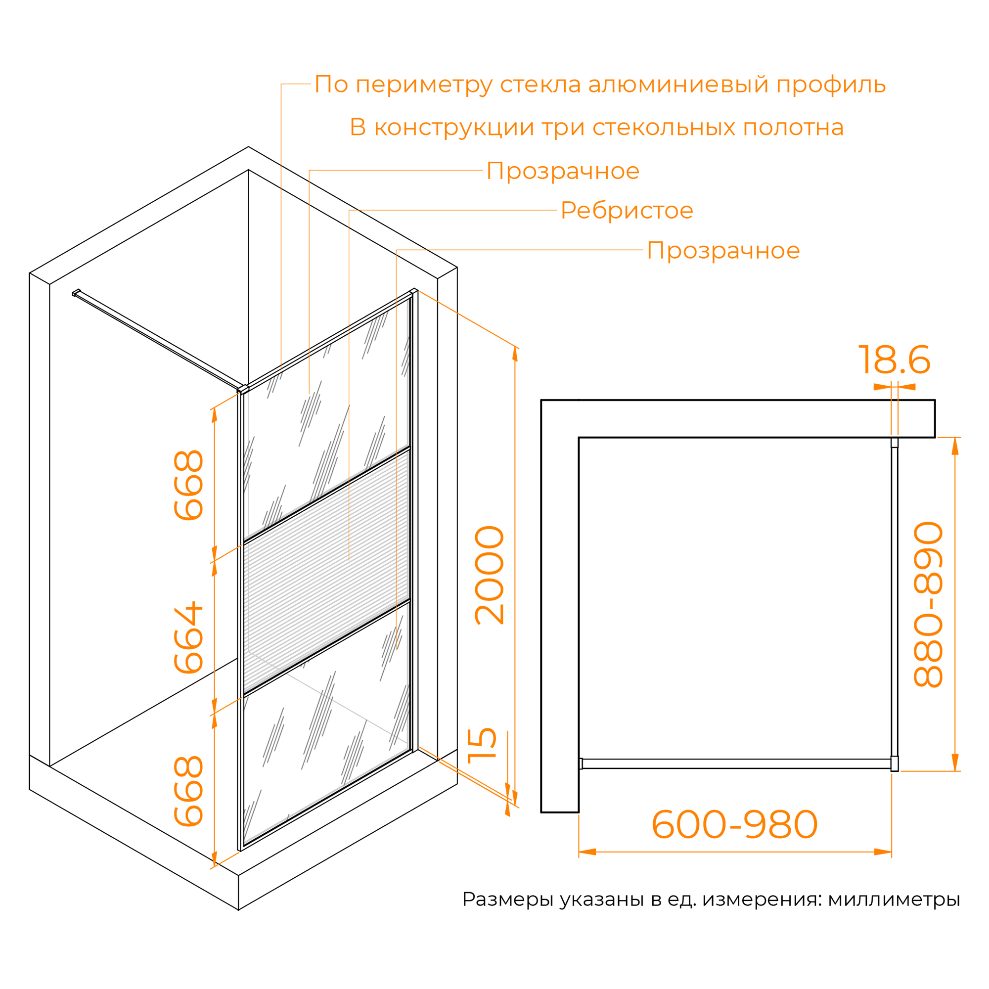 Пристенный профиль имеет регулировку, что позволяет нивелировать неровности стен.Стальная отрезная штанга длиной 1200 мм обеспечивает стабильность изделия. В процессе монтажа можно выбрать на каком расстоянии установить перегородку от противоположной стены, отрезая ненужную часть штанги. Рекомендованная минимальная длина штанги — не менее 700 мм.Для лёгкости очистки модель оснащена покрытием Easy Clean, которое предотвращает накопление известкового налёта и других загрязнений на стекле.Высота изделия: 2000 мм.
