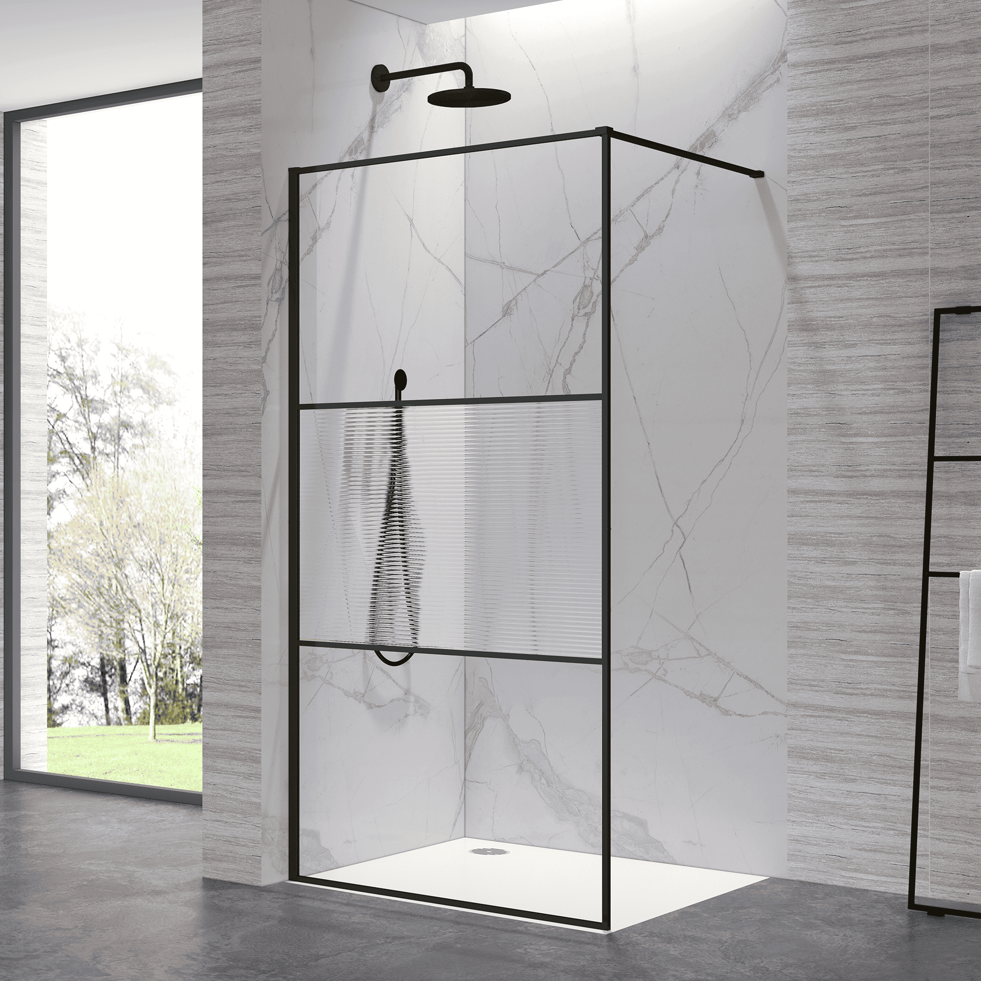 WA-09Модели представлены в трендовых цветовых решениях профиля: строгий чёрный и благородный золото браш.Разнообразные комбинации исполнения стекла:Ribbed Line (прозрачное + ребристое)ПрозрачноеТонированноеВысокопрочное премиальное закалённое стекло толщиной 8 мм, усиленный пристенный профиль ALUSTRONG MAX с антикоррозийной защитой и обрамление профилем по периметру каждого стекольного полотна (состоит из 3-х стекольных полотен) обеспечивают высокую надёжность и привлекательный внешний вид.