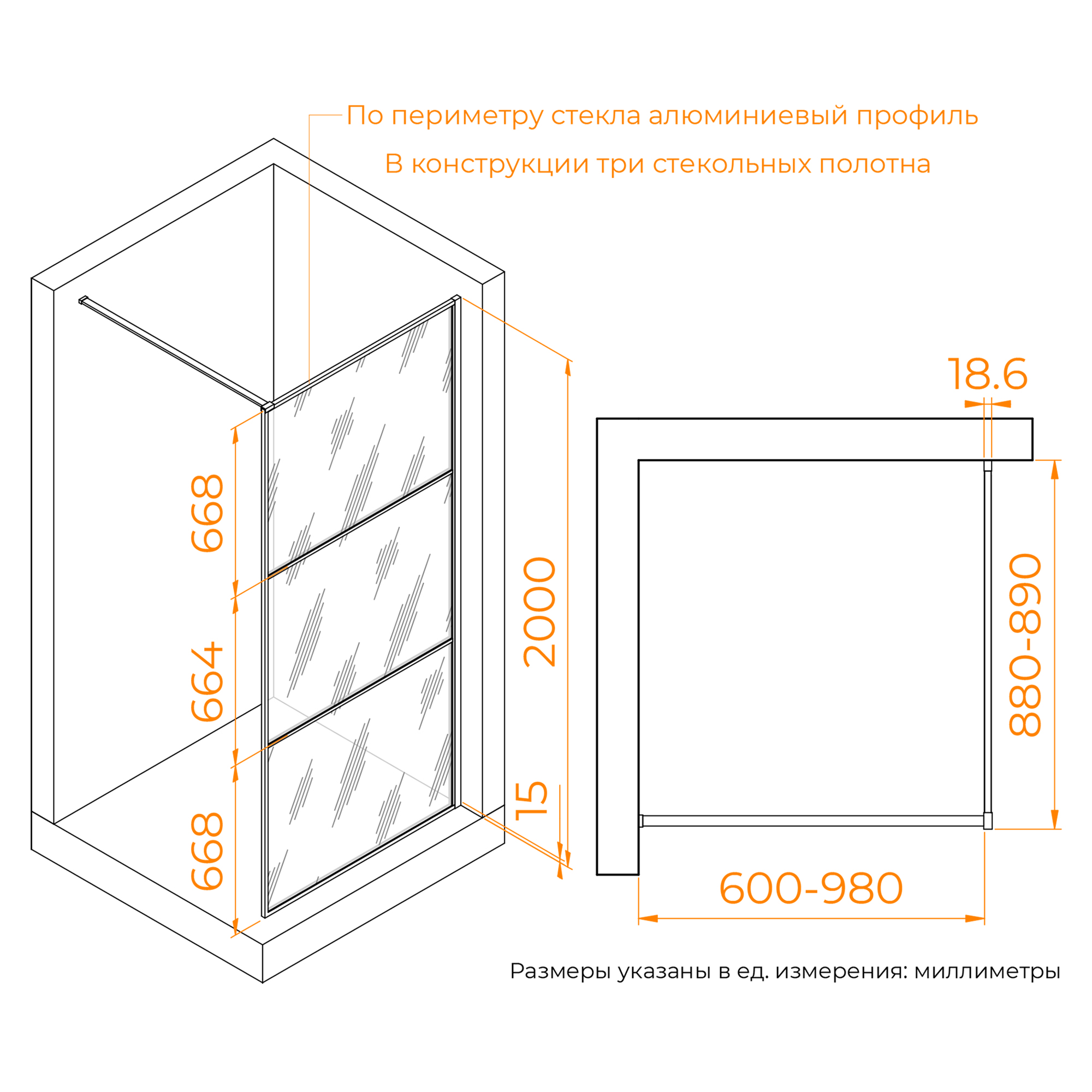 Пристенный профиль имеет регулировку, что позволяет нивелировать неровности стен.Стальная отрезная штанга длиной 1200 мм обеспечивает стабильность изделия. В процессе монтажа можно выбрать на каком расстоянии установить перегородку от противоположной стены, отрезая ненужную часть штанги. Рекомендованная минимальная длина штанги — не менее 700 мм.Для лёгкости очистки модель оснащена покрытием Easy Clean, которое предотвращает накопление известкового налёта и других загрязнений на стекле.Высота изделия: 2000 мм.