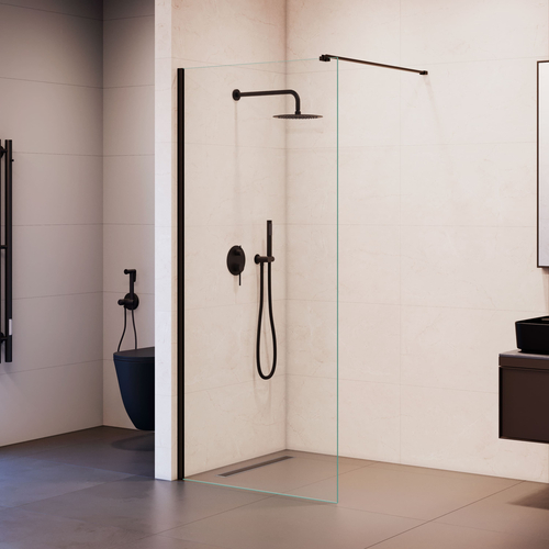 Душевая перегородка из стекла на профиле к стене бескаркасного типа с открытым входом в душ RGW WA-210 и вешалкой крючкообразного типа — Это современное решение в душе, позволяющее эффективно использовать штангу-держатель стекла как вешалку для полотенца или халата, при этом оно не только эффективно зонирует пространство, защищая остальную часть санузла от брызг, но и визуально расширяет вашу ванную комнату, наполняя ее светом и простором.