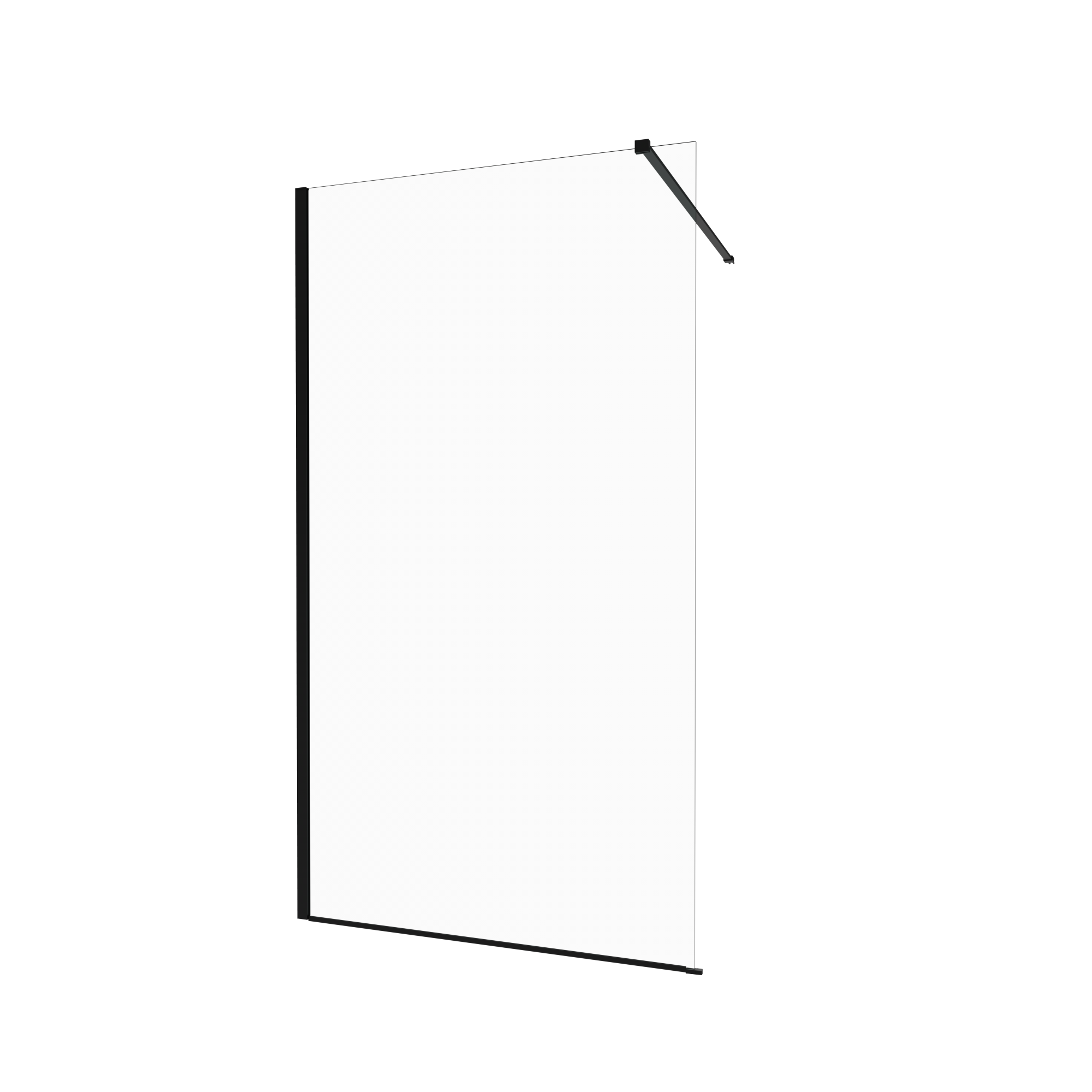 Стационарная стеклянная перегородка в нишу или как самостоятельный вариант из прочного прозрачного закалённого стекла толщиной 8 мм с чёрным профилем