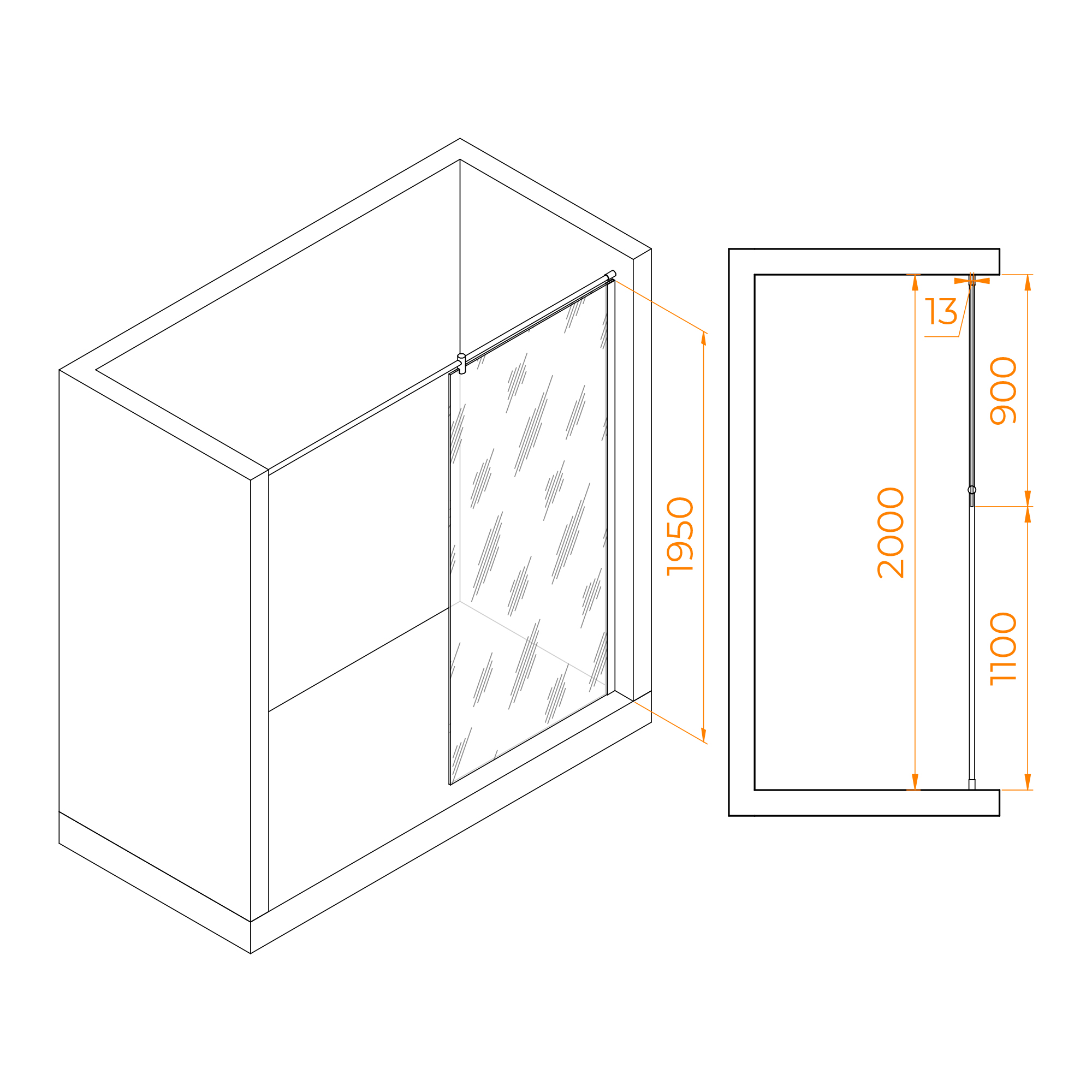 Душевая перегородка стационарная. Длина кронштейна 2200 мм. Стекло 8 мм. Трап или поддон приобретается отдельно.