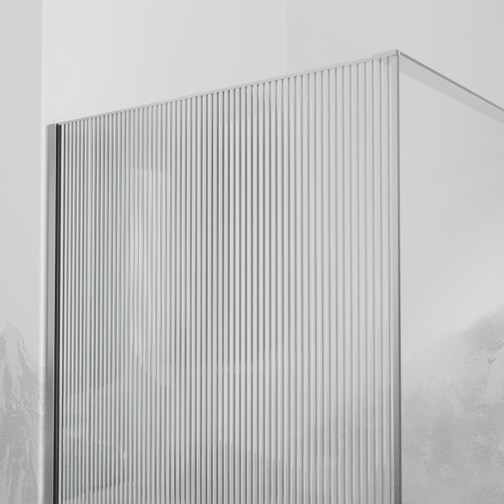 Душевая перегородка стационарная с боковым держателем и ребристым стеклом толщиной 8 мм.