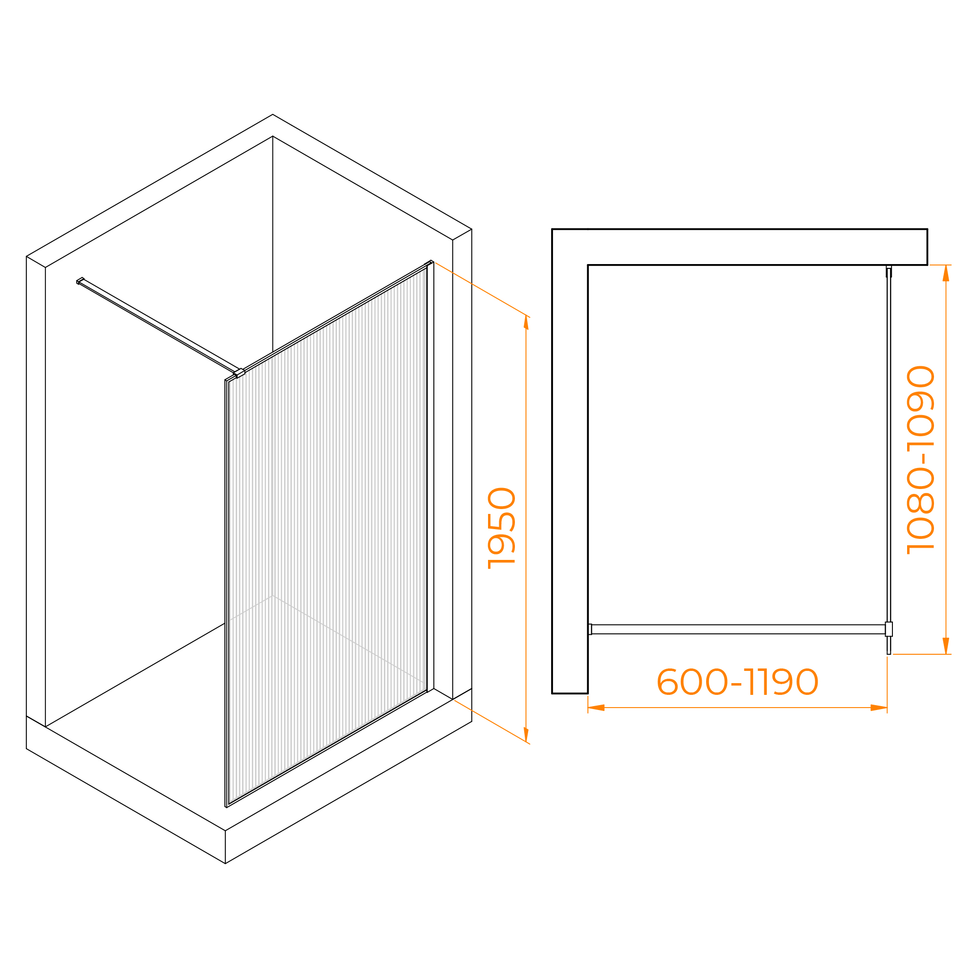 Душевая перегородка стационарная с боковым держателем и ребристым стеклом толщиной 8 мм.