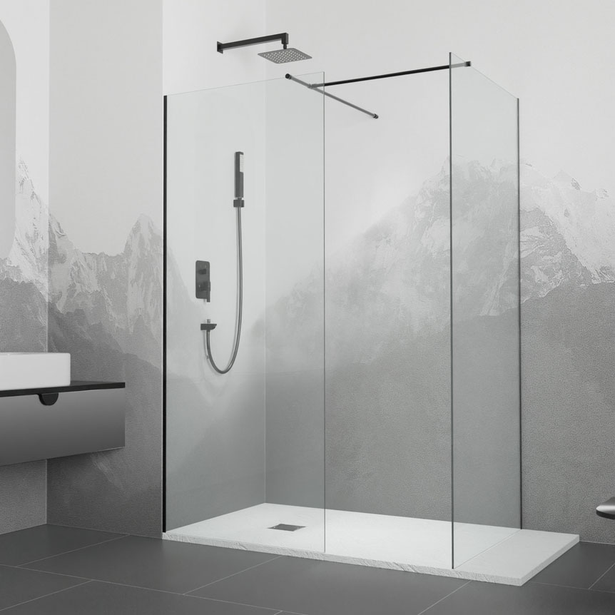 Душевая перегородка неподвижная. Состоит из двух RGW WA-10 и соединительного коннектора RGW S-1220. Длина кронштейна 1000 мм. Трап или поддон приобретается отдельно.