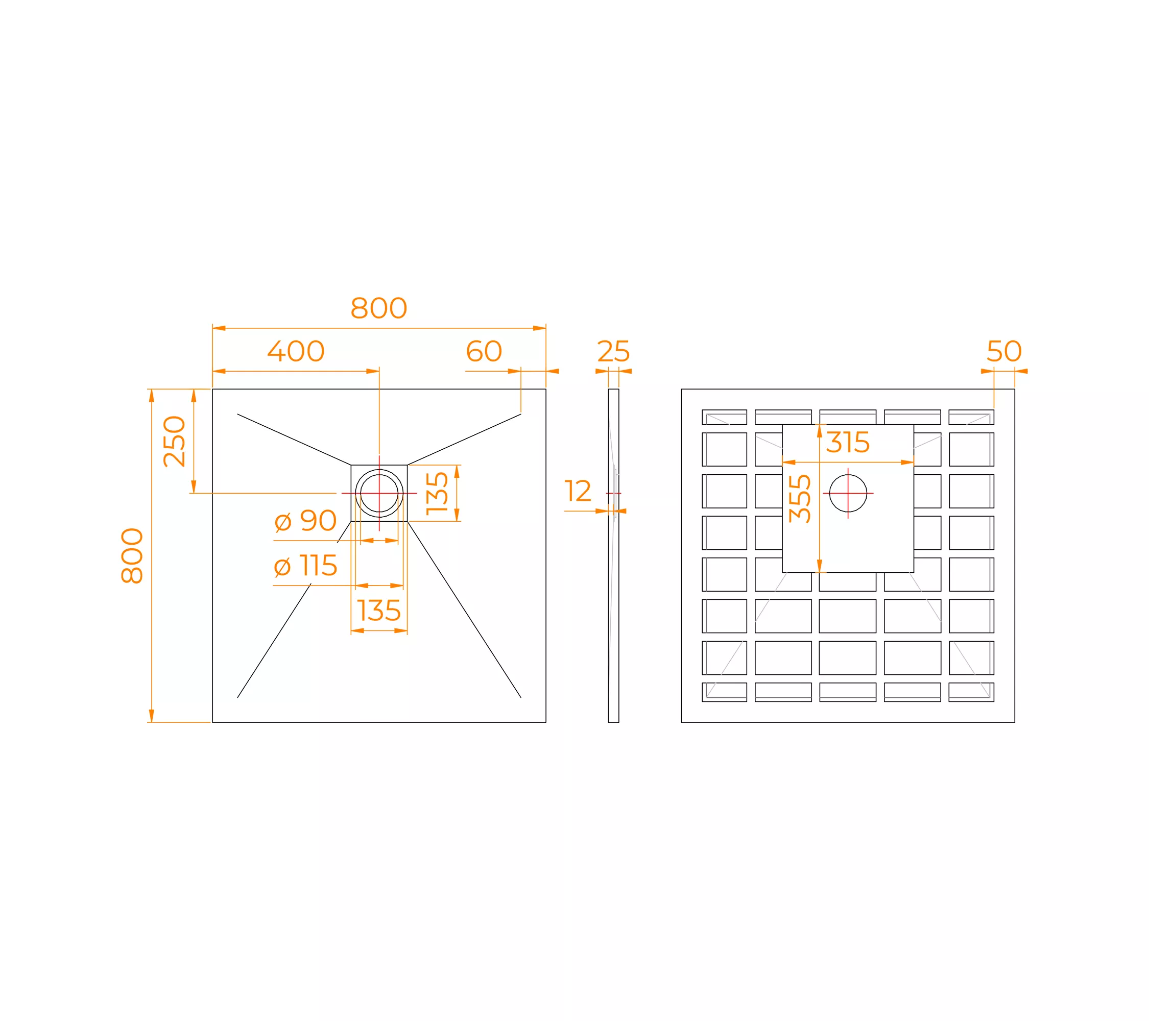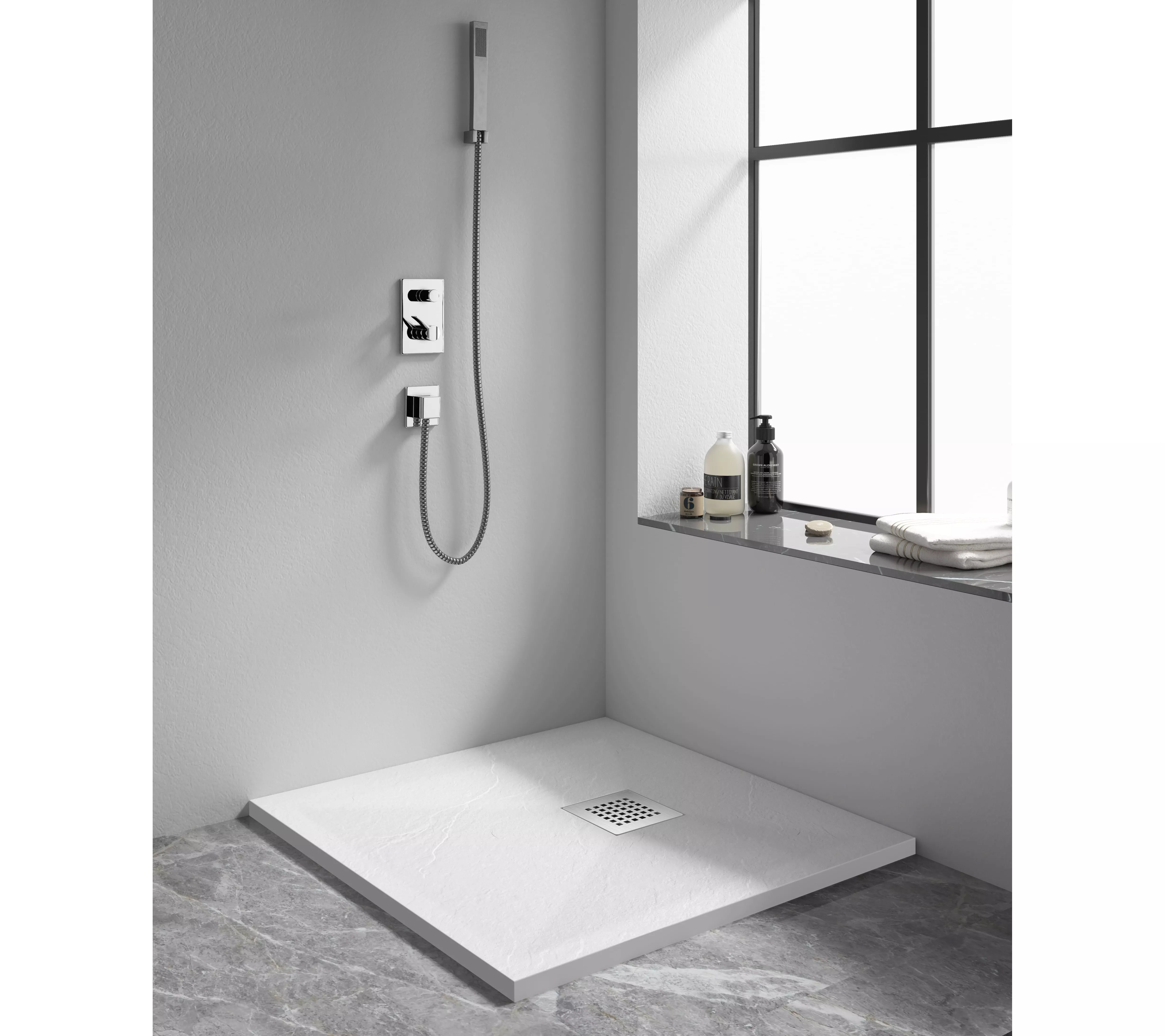 Разнообразие форм: поддоны доступны в конфигурациях квадрат, полукруг, прямоугольник и трапеция (пятиугольные), что позволяет выбрать подходящий вариант для вашего интерьера.Широкий размерный ряд: от 800x800 мм с шагом в 10 см до максимального размера 900x1200 мм, что дает возможность подобрать оптимальный поддон для вашей ванной комнаты.Монтаж в пол — поддон устанавливается в один уровень с полом для создания безбарьерного доступа, визуально расширяя пространство ванной комнаты.