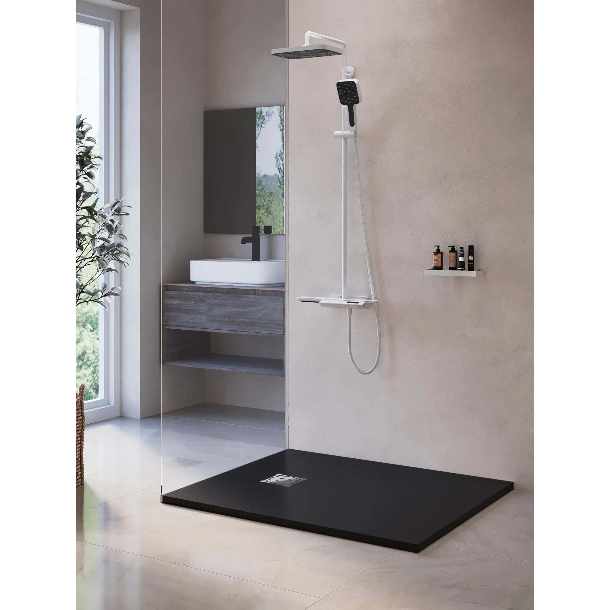 Душевые поддоны из искусственного камня, обладают высокой прочностью и долговечностью. Материал поддона позволяет резку по индивидуальным размерам. Поверхность поддонов рельефная, антискользящая. Нагрузка на поддон до 300 кг.