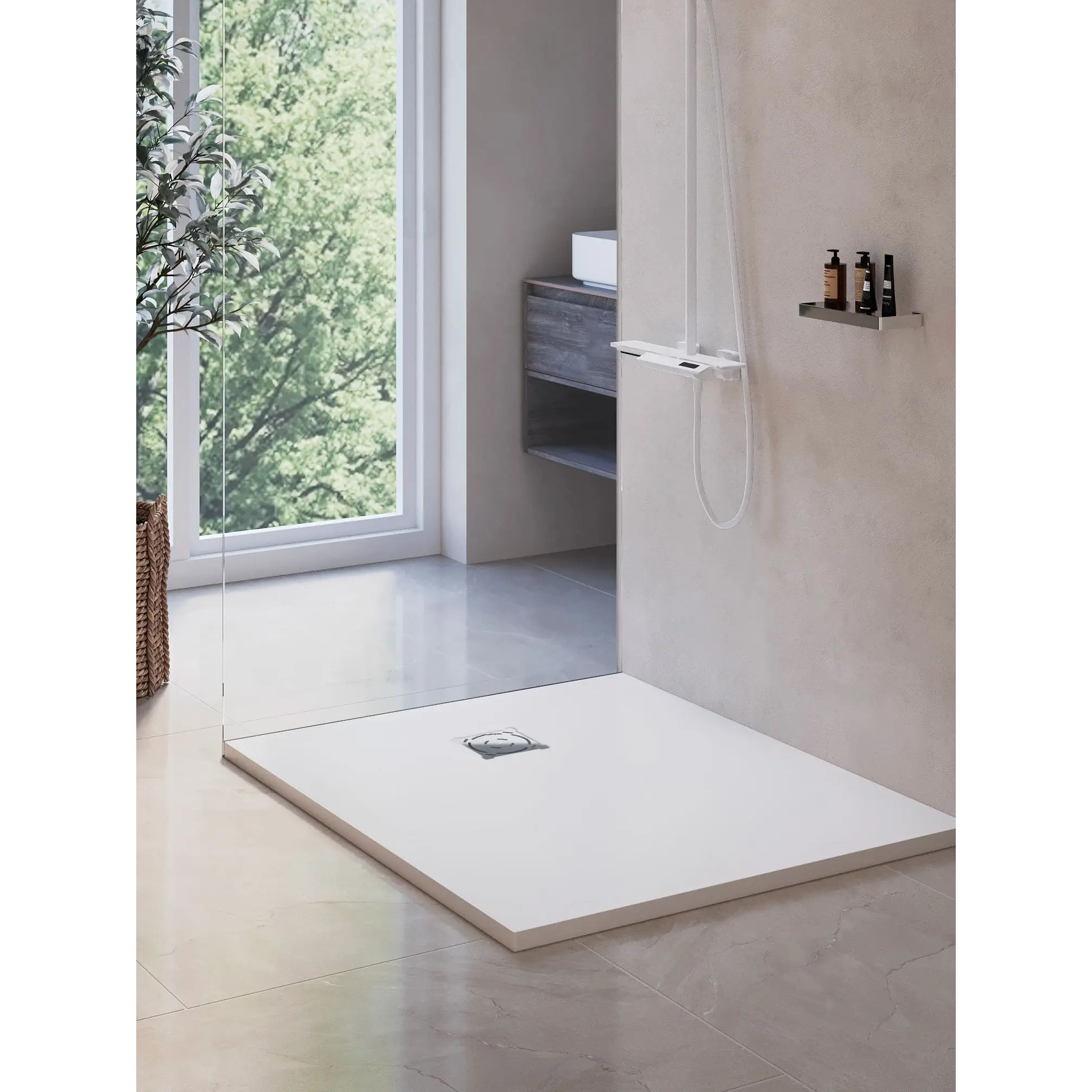 Душевые поддоны из искусственного камня, обладают высокой прочностью и долговечностью. Материал поддона позволяет резку по индивидуальным размерам. Поверхность поддонов рельефная, антискользящая. Нагрузка на поддон до 300 кг.