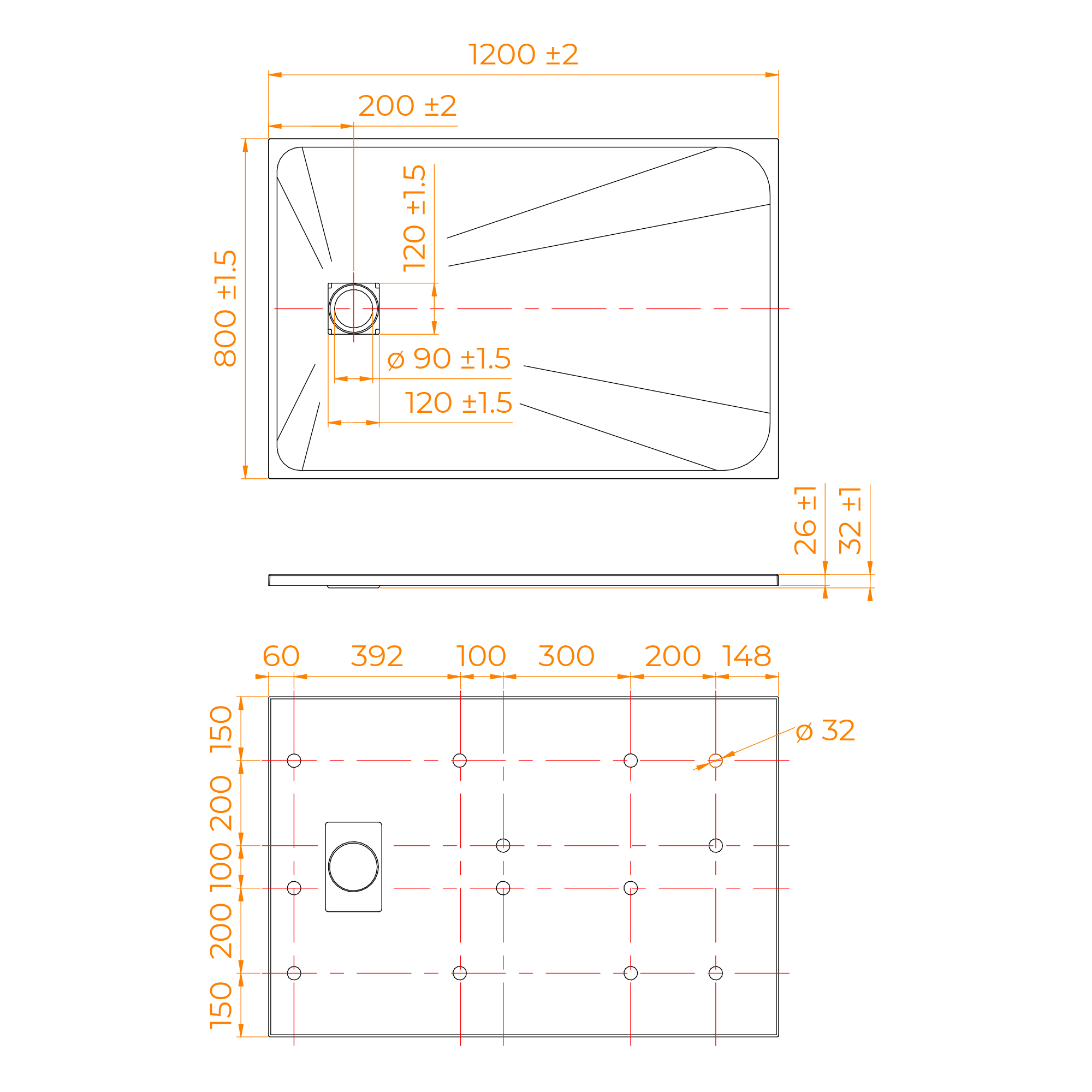 Материал исполнения SMC - стеклопластик или стеклокомпозит.Поддоны производятся на сложнейшем оборудовании под воздействием большого давления и высокой температуры.В результате получаются изделия по твердости поверхности не уступающие закалённому стеклу, а волокнистая структура материала и специальная конструкция поддонов позволяет выдерживать значительные механические нагрузки.Низкая теплопроводность материала, такая же как у дерева, позволяет поддерживать комфортную температуру поверхности поддона в процессе использования.Фактура поверхности эмитирует природный камень с антискользящим эффектом;"Крышка сифона идеально сочетается с поддоном, так как имеет тот же цвет и фактуру;"Технический уклон для эффективного стока воды;"Малый вес обеспечивает простую транспортировку и быструю установку;"Общая высота поддона: 26 мм.;"Диаметр сифона: 90 мм.;"Рассчитан на весовую нагрузку: до 180 кг;"Монтаж: в один уровень с полом, на подиум или на ножки.