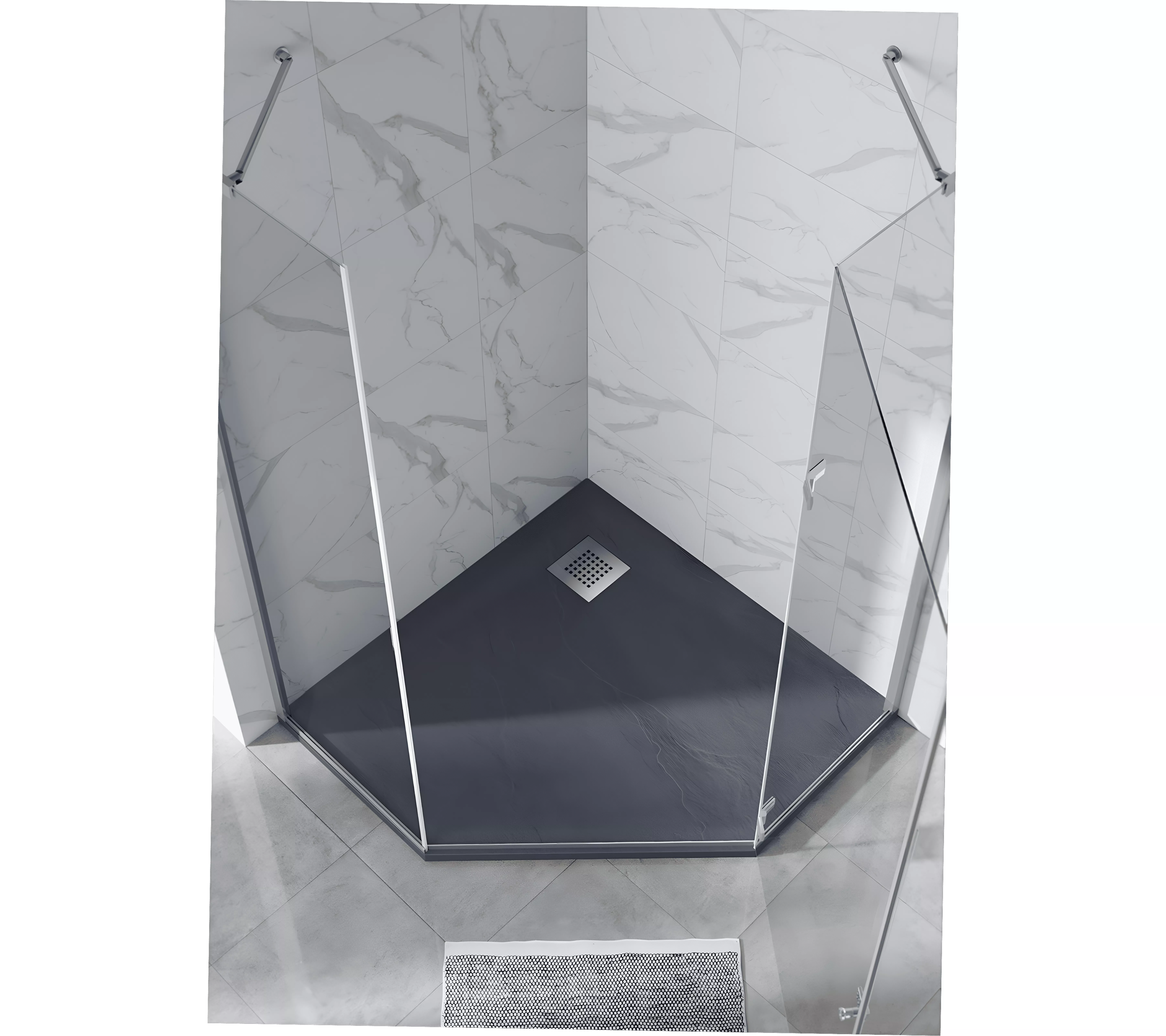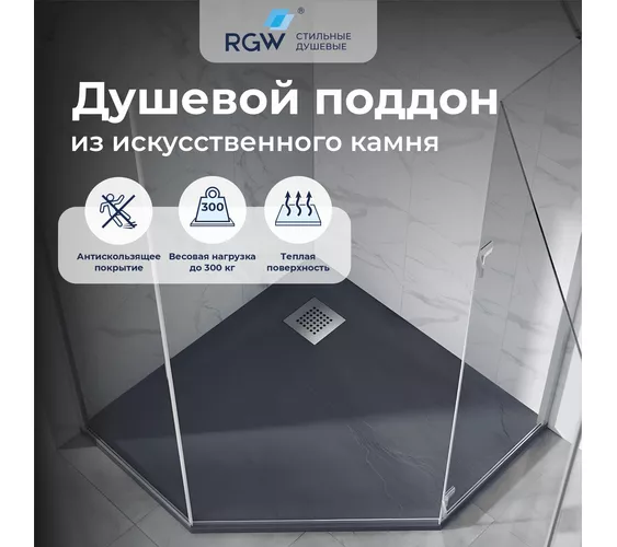 Душевой поддон из искусственного камня – идеальный выбор для вашего интерьера и удобства!Искусственный камень — это композитный материал, в составе которого полимерная смола и мраморная крошка. Поверхность поддона покрыта специальным Гелькоутом, который придает изделию стойкость к механическим повреждениям и агрессивным средам, а также обеспечивает долговечность.Антискользящая поверхность поддона имитирует натуральный камень и выдерживает нагрузку до 300 кг, что гарантирует безопасность при использовании.Разнообразие форм: поддоны доступны в конфигурациях квадрат, полукруг, прямоугольник и трапеция (пятиугольные), что позволяет выбрать подходящий вариант для вашего интерьера.Широкий размерный ряд: от 800x800 мм с шагом в 10 см до максимального размера 900x1200 мм, что дает возможность подобрать оптимальный поддон для вашей ванной комнаты.Монтаж в пол — поддон устанавливается в один уровень с полом для создания безбарьерного доступа, визуально расширяя пространство ванной комнаты.Доступная среда: отсутствие бортика позволяет создать удобный доступ в ванную комнату для людей с ограниченными возможностями здоровья.Гибкость установки: при невозможности утопить сливные трубы в стяжку, можно установить поддон на ножки RGW N-01(10), а образовавшееся пространство закрыть экраном GW N/ST.Технический уклон поддона обеспечивает быстрый слив воды в течение 20-30 секунд, даже при использовании крупной лейки или тропического душа.Сифон и решетка приобретаются отдельно. Решетка из нержавеющей стали (цвет Хром 304) и Сливной сифон Stone S-2 не включены в комплект, что позволяет избежать проблем с транспортировкой и недоставкой при совместной упаковке.Антивандальная упаковка гарантирует безопасную доставку поддона в любой уголок мира без повреждений.Срок службы поддона составляет не менее 25 лет, что делает его надежным выбором для долгосрочной эксплуатации.Приятная цена и дополнительные преимущества:Промкод для оптовой закупки от 30 штук.Для отелей, SPA и мест общего пользования — дополнительная страховка на эксплуатацию (по запросу у менеджера проекта).Быстрая доставка или самовывоз со склада в Московской области (Подольск, микрорайон Климовск, ул. Коммунальная 50).