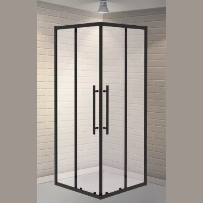 Квадратное ограждение ESBANO ESF-90KV-B (без поддона)-закаленные прозрачные стекла (6 мм) с покрытием Easy Clean-вертикальные алюминиевые профили (чёрные)-горизонтальные алюминиевые профили (40 мм) - 4шт.-пластиковые торцевые заглушки профилей – 2 шт. (чёрные)-антибрызговики (прозрачные уплотнители) - 4 шт.-ручки (44см) из нержавеющей стали в цвет профиля.-верхние (спаренные) ролики -4 шт.-нижние (спаренные) ролики -4 шт.-пристенные регулировочные профили - 2 шт.