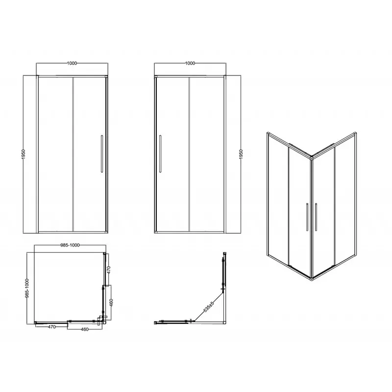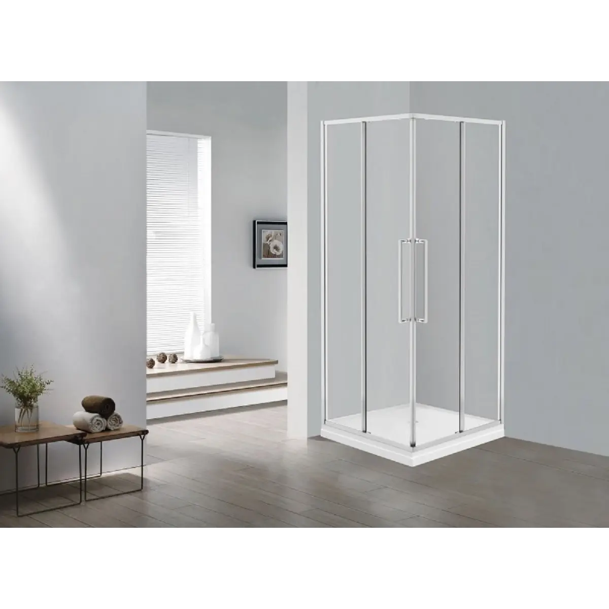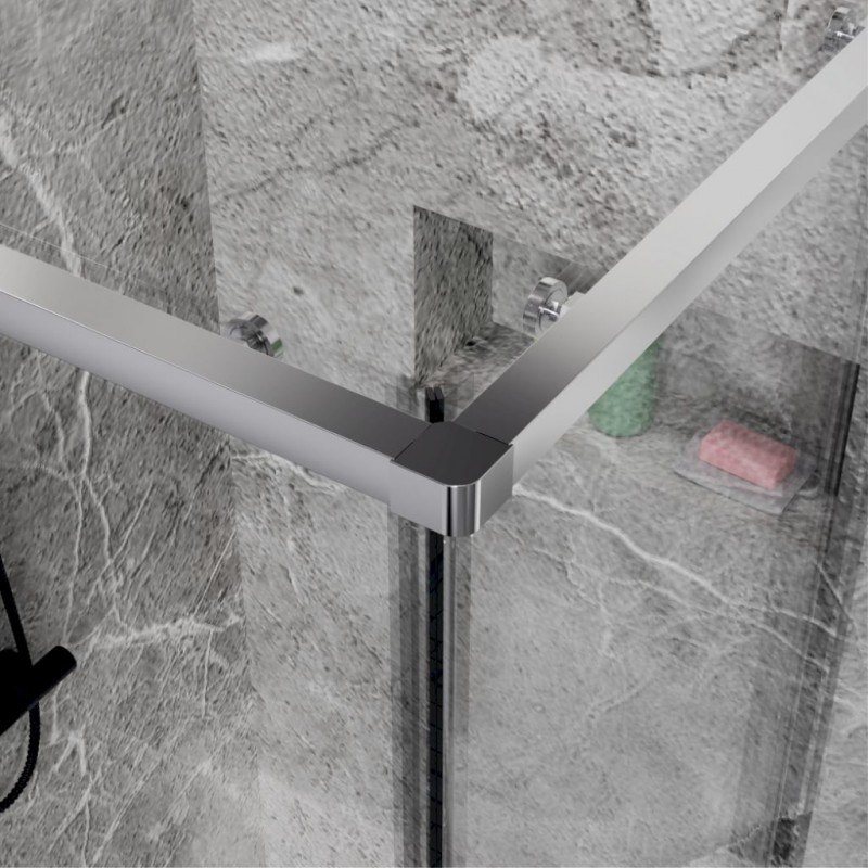 Квадратное ограждение ESBANO ESS-100KV-C (без поддона)-закаленные прозрачные стекла (6 мм) с покрытием Easy Clean-вертикальные алюминиевые профили (хром)-горизонтальные алюминиевые профили (22 мм) - 4шт.-пластиковые торцевые заглушки профилей – 2 шт. (хром)-антибрызговики (прозрачные уплотнители) - 4 шт.-ручки (46см) из нержавеющей стали в цвет профиля.-верхние ролики -4 шт.-нижние блоки скольжения-2 шт.-пристенные регулировочные профили - 2 шт.