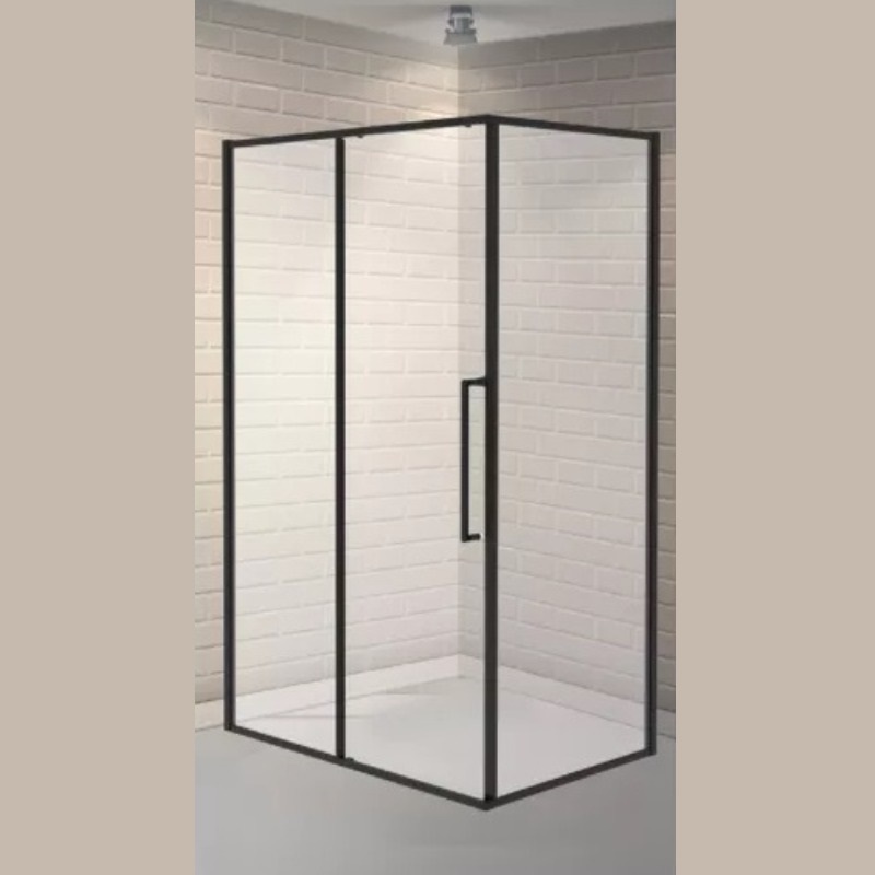Прямоугольное ограждение ESBANO ESS-108PS-B (без поддона)-закаленные прозрачные стекла (6 мм) с покрытием Easy Clean-вертикальные алюминиевые профили (чёрные матовые)-горизонтальные алюминиевые профили (22 мм) - 4шт.-пластиковые торцевые заглушки профилей – 2 шт. (чёрные)-антибрызговики (чёрные уплотнители) - 4 шт.-ручка (46см) из нержавеющей стали в цвет профиля.-верхние ролики -2 шт.-нижний блок скольжения-1 шт.-пристенные регулировочные профили - 2 шт.