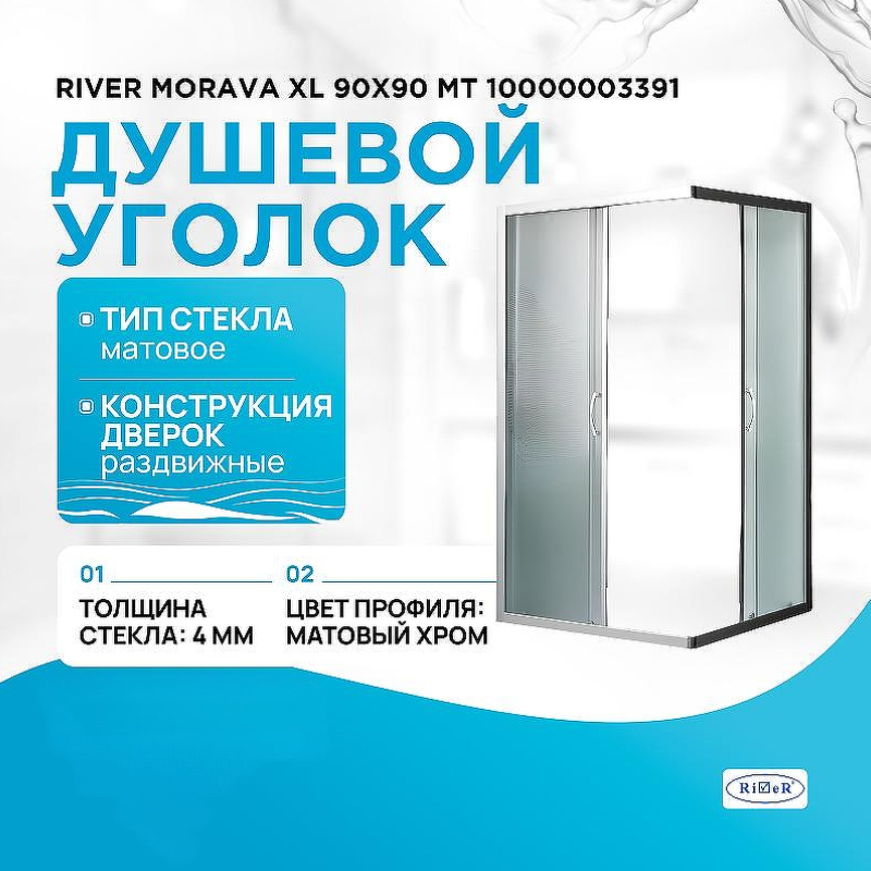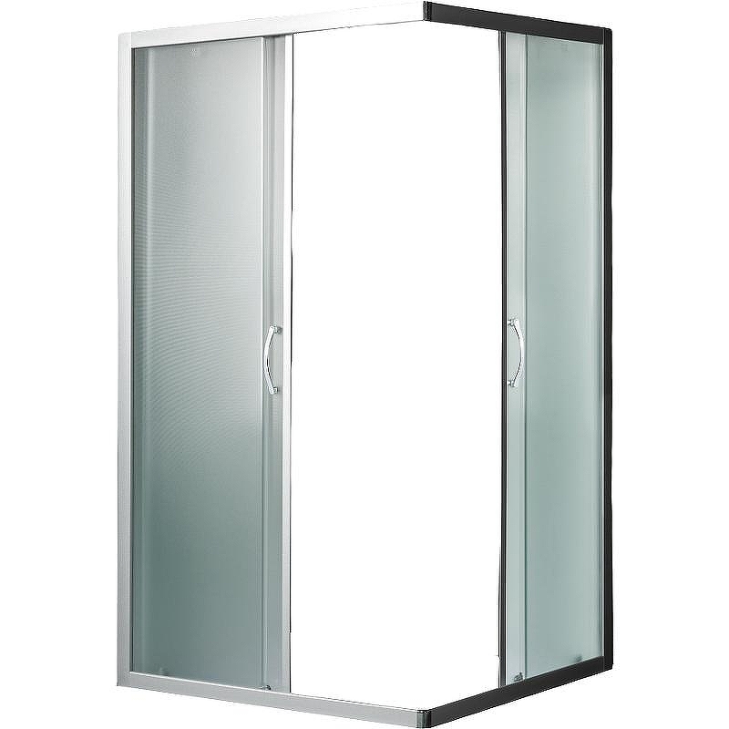 Душевое ограждение для ванной комнаты квадратное с боковым регулировочным профилем и саморегулирующимися металлическими, хромированными, двойными роликами.