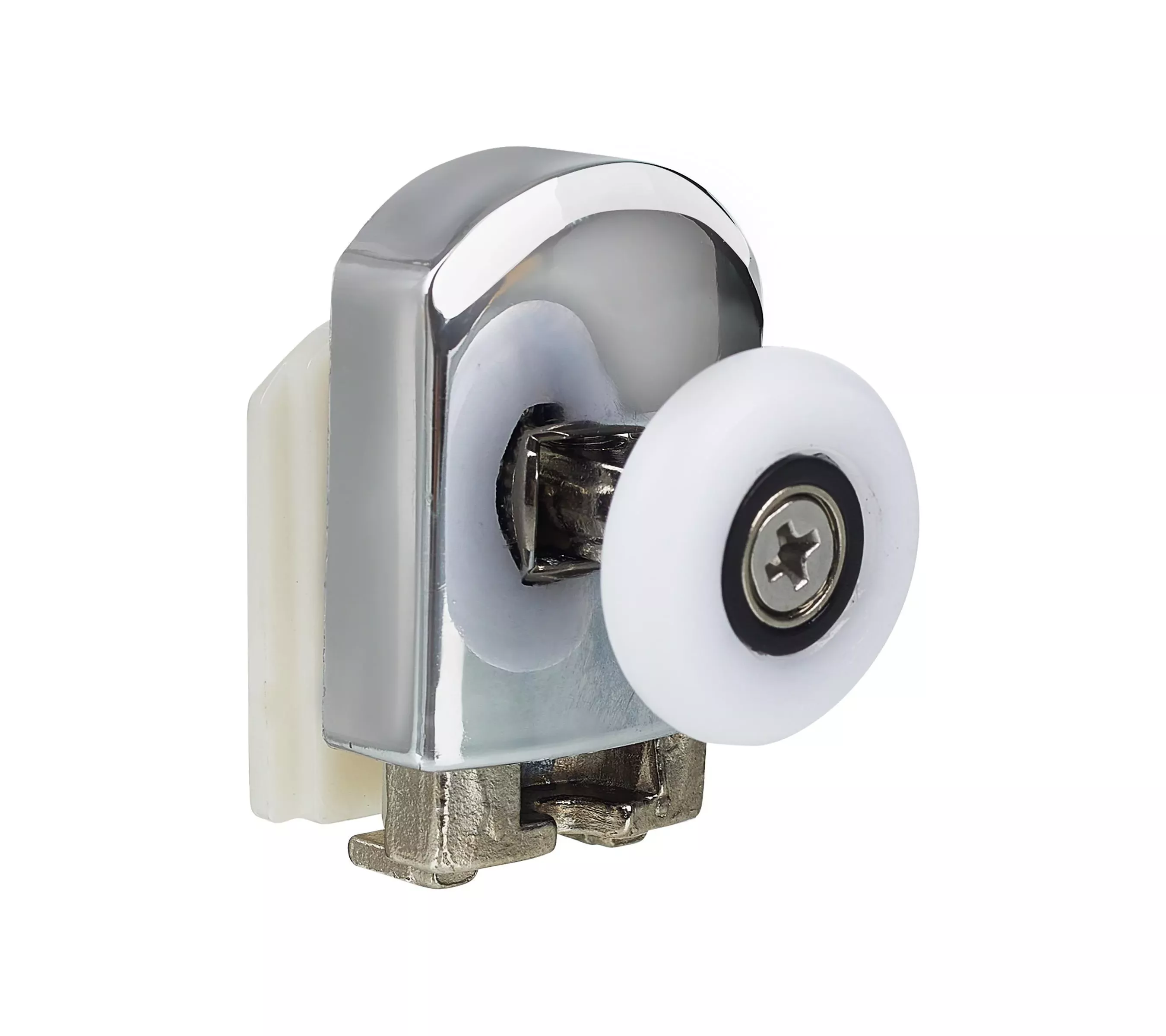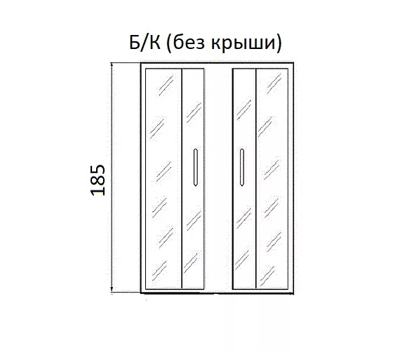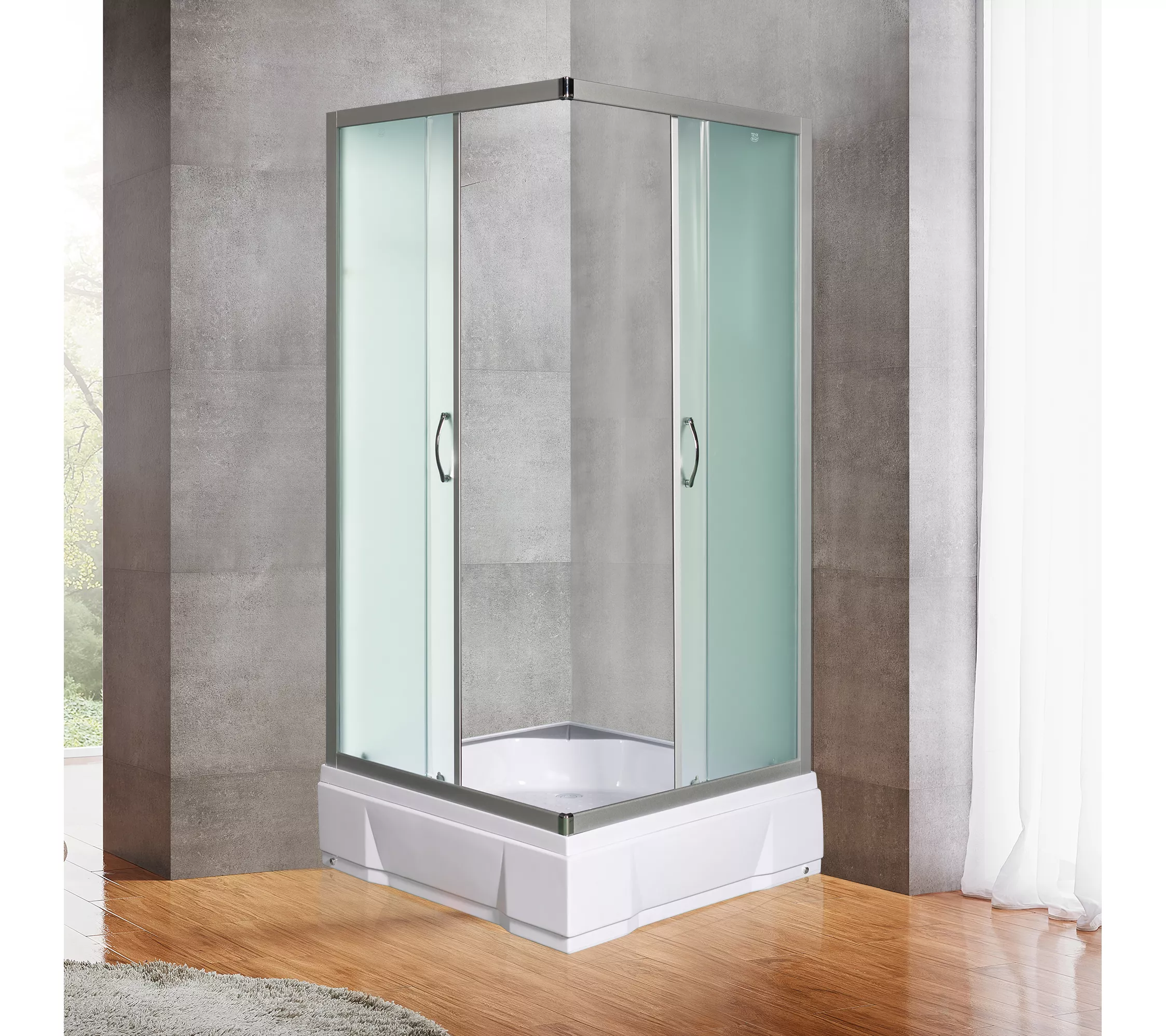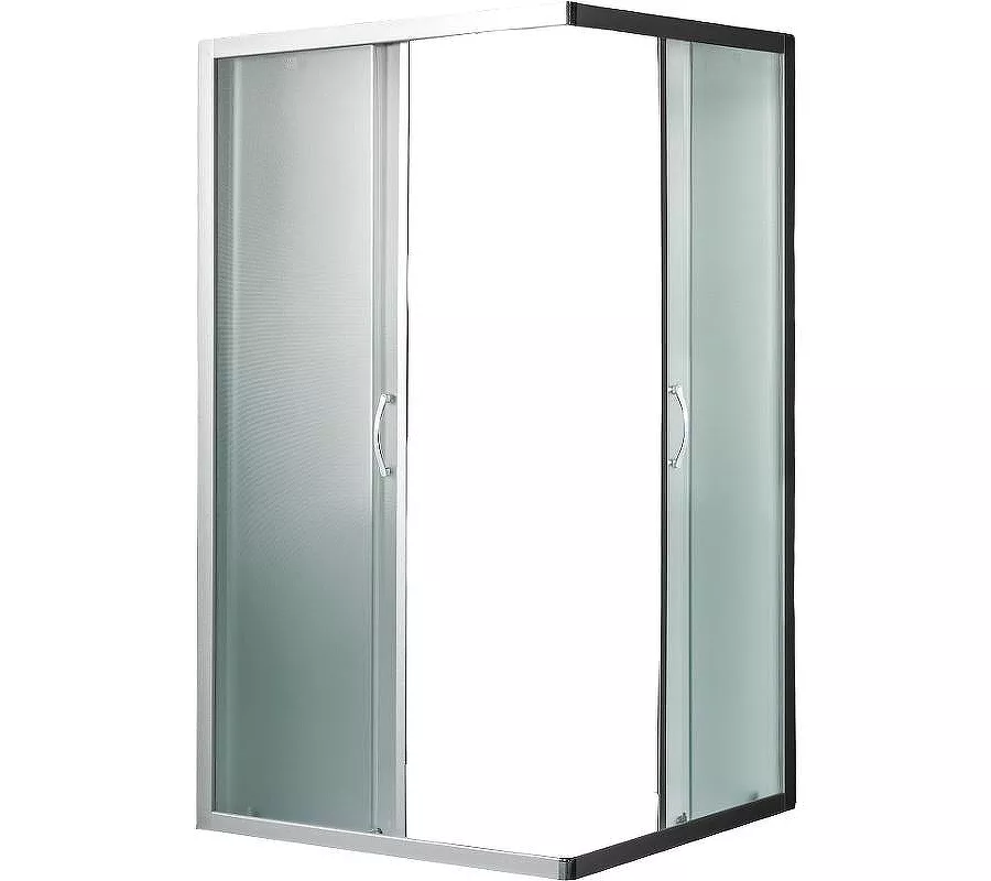Душевое ограждение для ванной комнаты квадратное с боковым регулировочным профилем и саморегулирующимися металлическими, хромированными, двойными роликами.