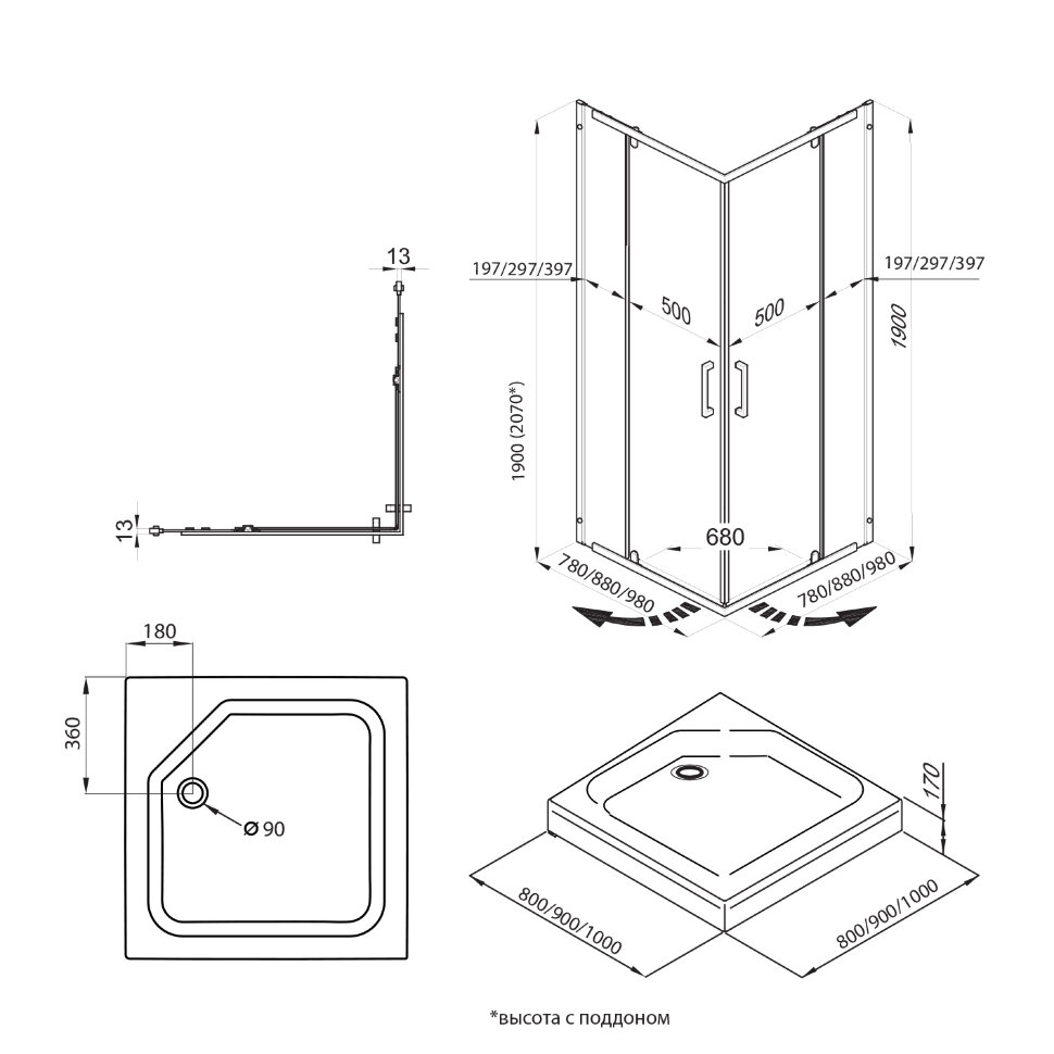 Высота поддона 17 см