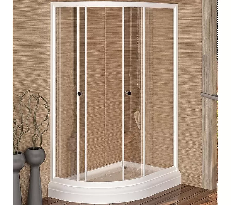 Душевой угол обладает классической белой расцветкой и радиальной формой поддона. Он великолепно сочетается с любым стилистическим решением санузла, гармонизирует пространство, не загромождая и не скрадывая полезную площадь.