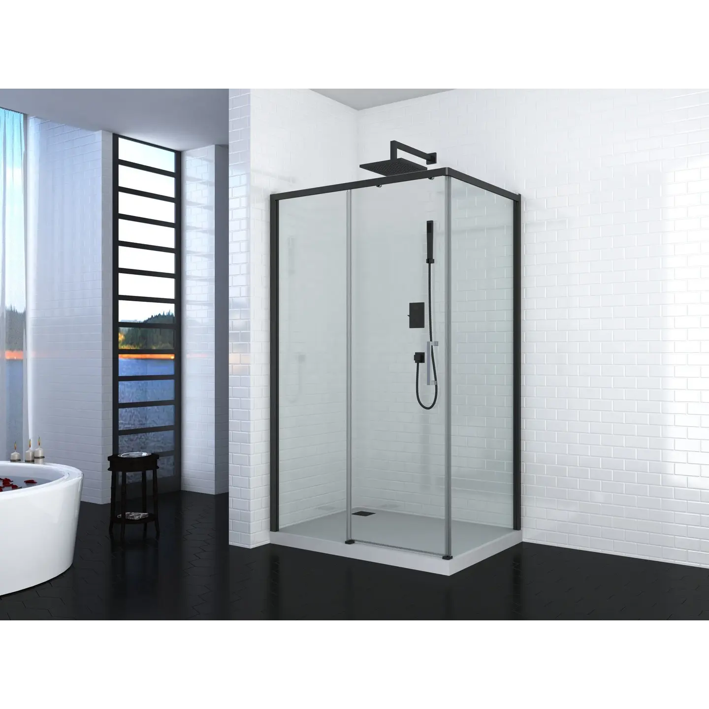 Душевой уголок Ceruttispa Vito110B-L без поддона. Размер: 110x80x195 см. Стекло: закаленное 6 мм, прозрачное, без рисункаПрофиль: алюминиевый,черныйДверь: раздвижная на роликахРолики: Doppi двойные металлические хромированныеРучка: Acciaio puro - черная из чистой стали Особенность:1- универсальная сборка левая или правая2 - магнитный замок - Soft close3 - сборка Quick staple4 - наличие пристенных профилей для выравнивания кривых стен.