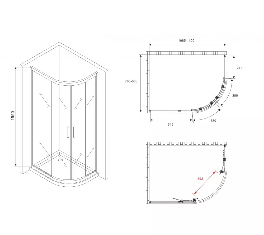 Душевой уголок ABBER Schwarzer Diamant асимметричный, прозрачное/хром 120х80