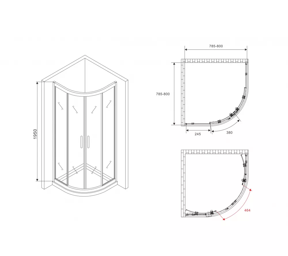 Душевой уголок ABBER Schwarzer Diamant трапеция, прозрачное / хром 100*100