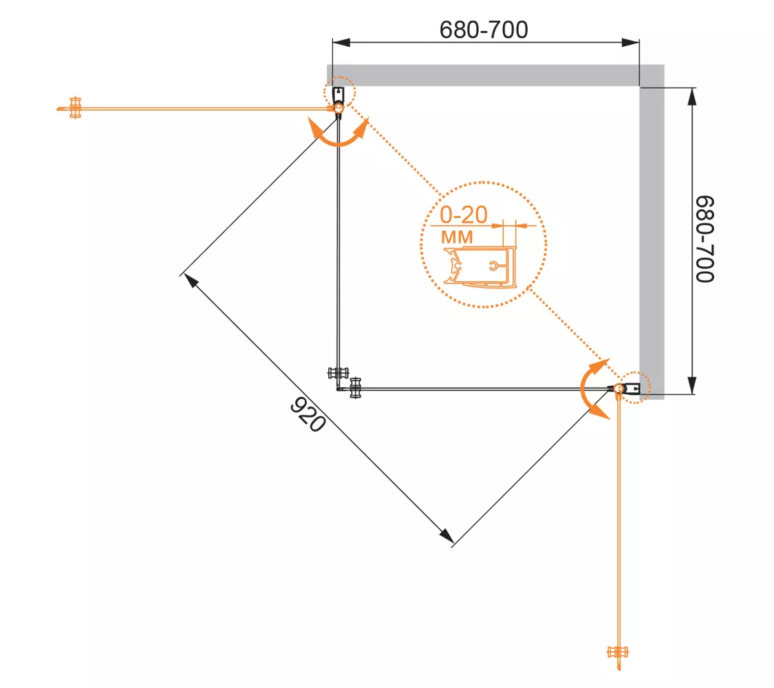Душевой уголок CEZARES ELENA-W-A-2-C-Cr 70х70