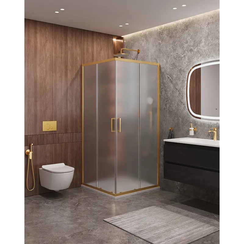 Душевой уголок Cezares Molveno 90x90 MOLVENO-A-2-90-P-BORO профиль Брашированное золото стекло рифленое