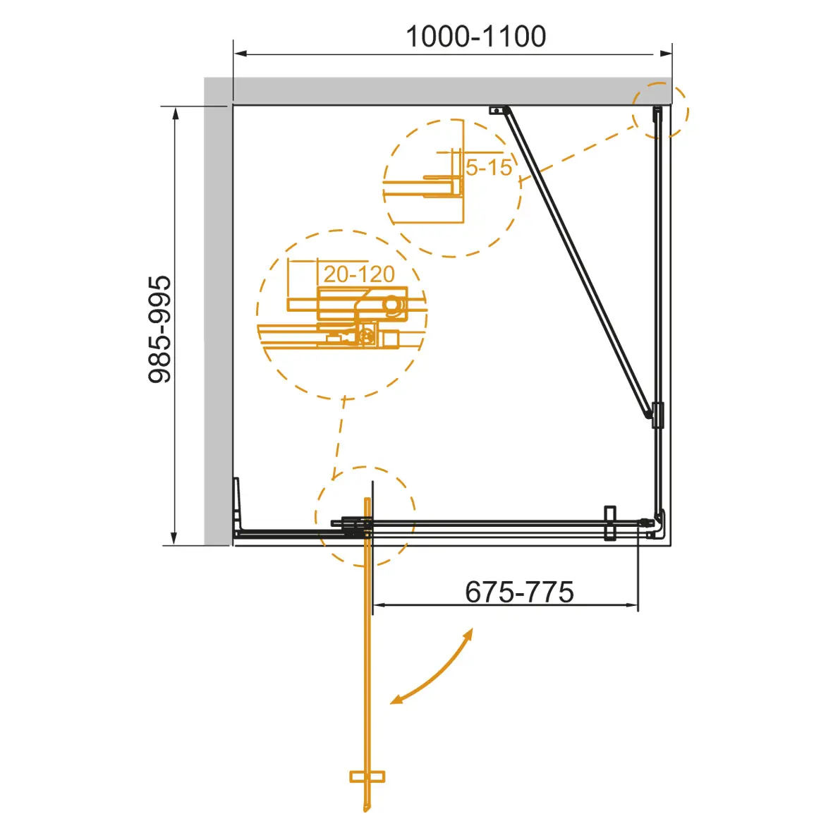 Серия Slider доступна к заказу с профилем в отделке хром и черный.Исполнение стекла прозрачное, тонированное серое или бронзовое.Толщина закаленного стекла стекла 8 мм.Оригинальная надёжная конструкция петли Slider позволяет регулировать ширину входа душевого ограждения в диапазоне 10 см.Петли дверного полотна выполнены из нержавеющей стали.