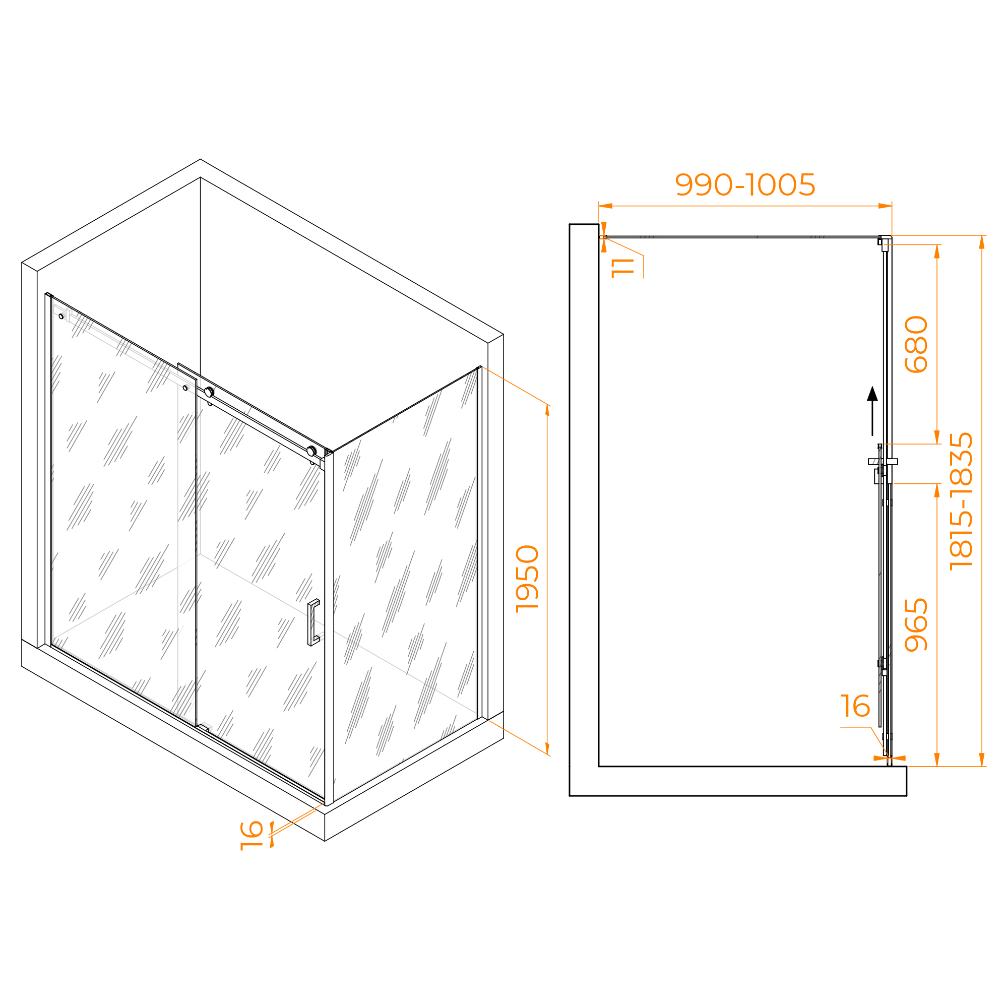 Душевой уголок прямоугольный RGW TO-44 состоит из душевой двери RGW TO-14 и боковой панели RGW Z-04. В комплекте нижняя пороговая планка. Магнитный уплотнитель двери. Трап или поддон приобретается отдельно.