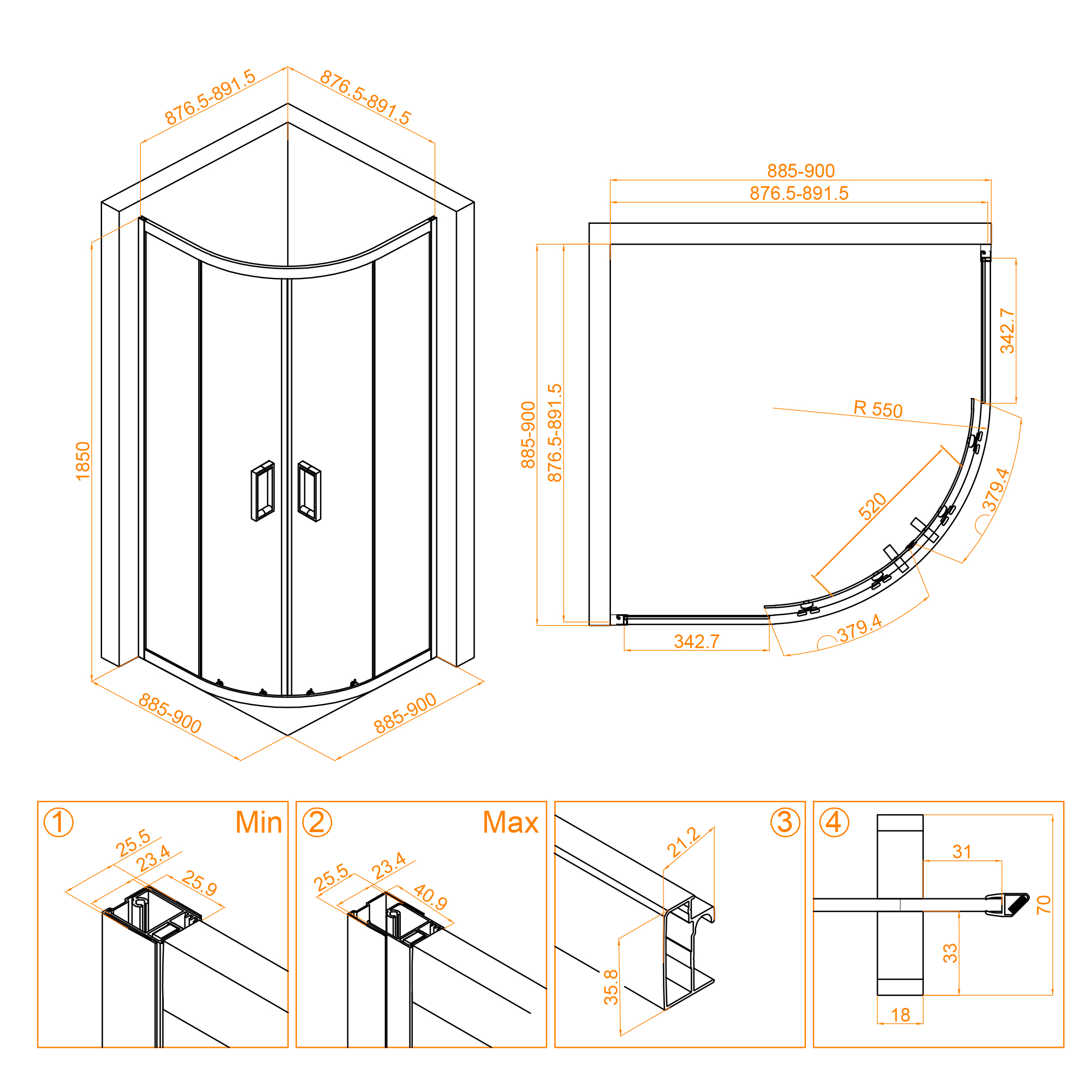 Размеры с диапазоном регулировок