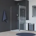 Душевой угол с распашной дверью распашная. В комплекте нижняя пороговая планка. Трап или поддон приобретается отдельно.