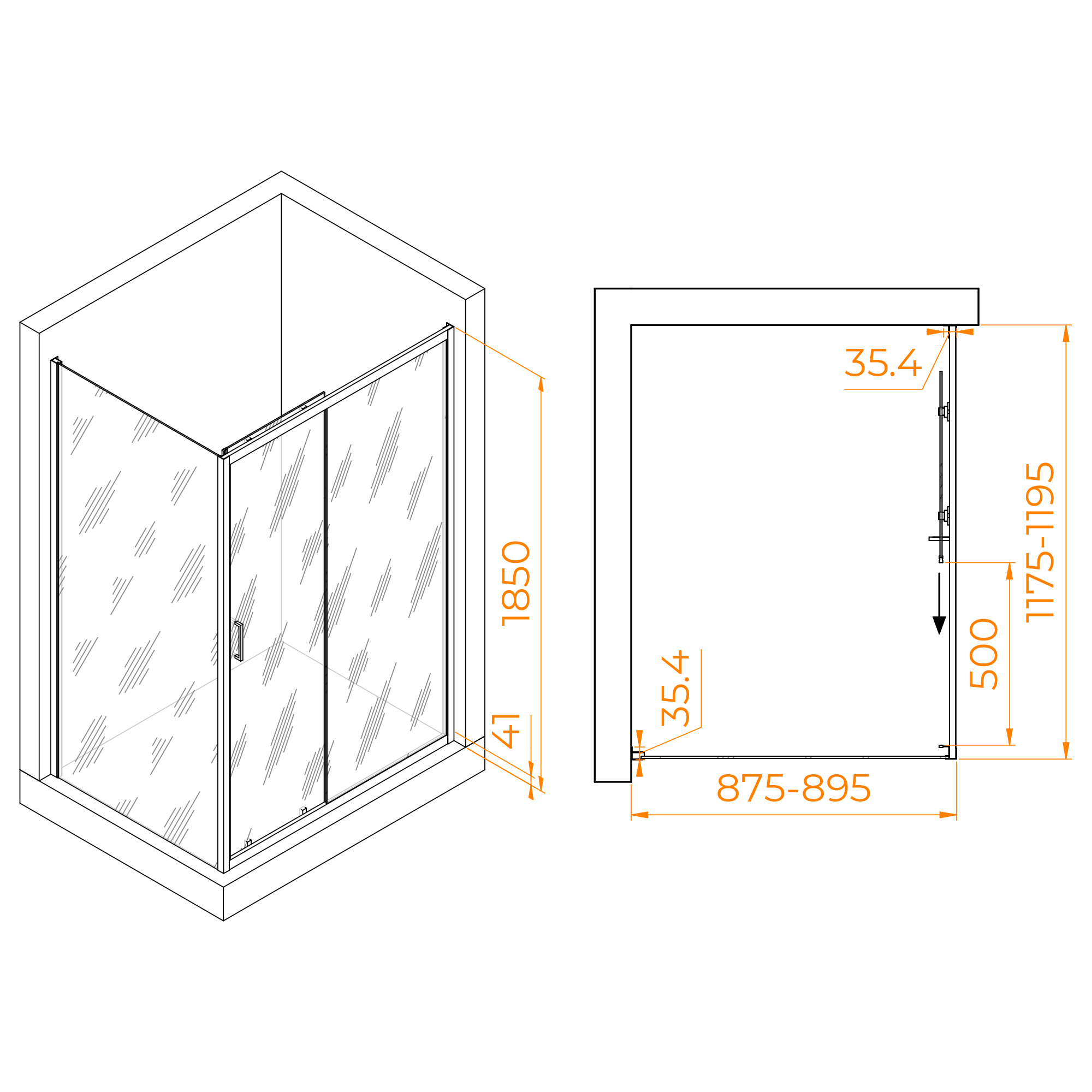 Душевой уголок прямоугольный, одна раздвижная дверь. Трап или поддон приобретается отдельно.