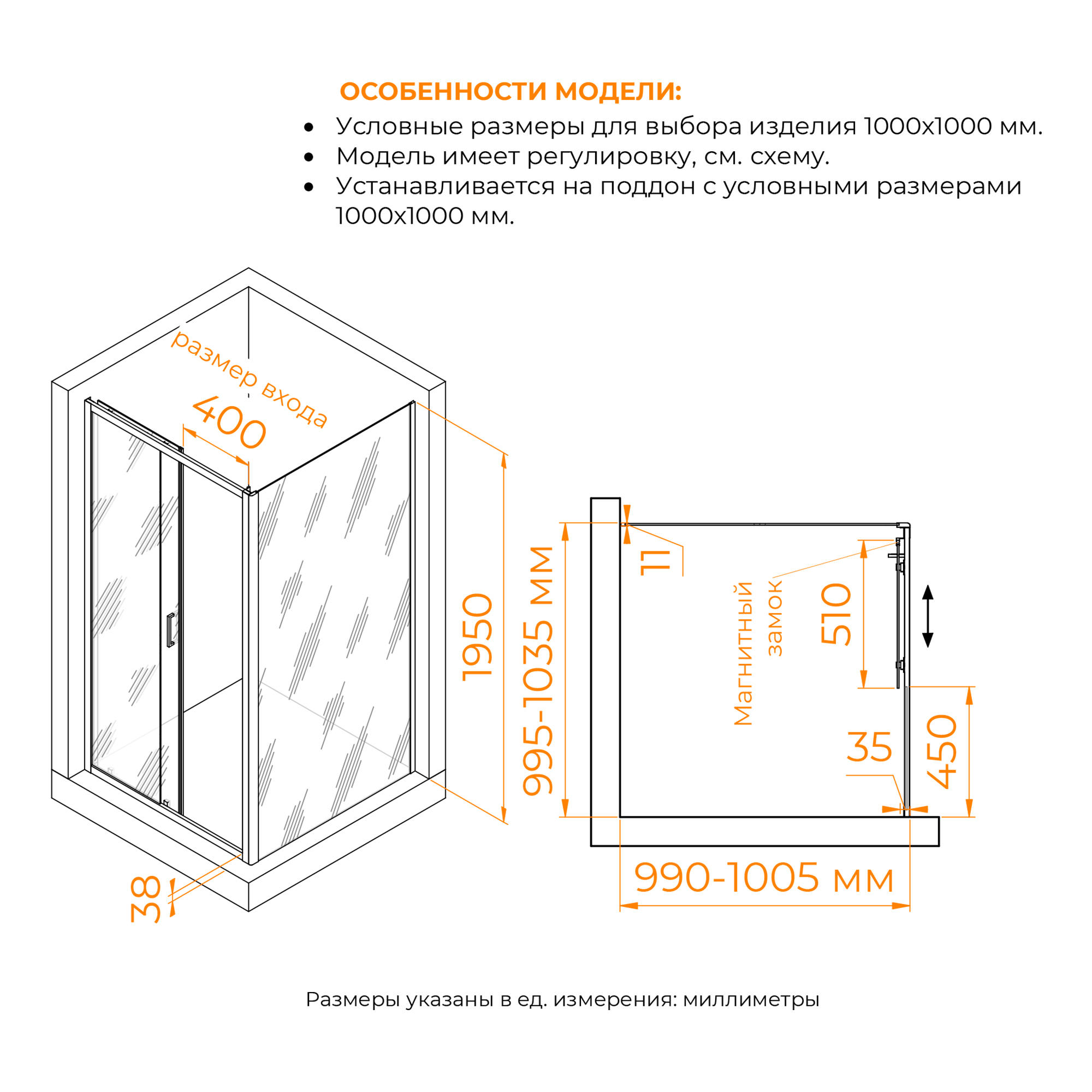 Душевой уголок прямоугольный RGW PA-74-1 состоит из душевой двери RGW PA-14 и боковой панели RGW Z-060-2. Поддон приобретается отдельно.