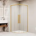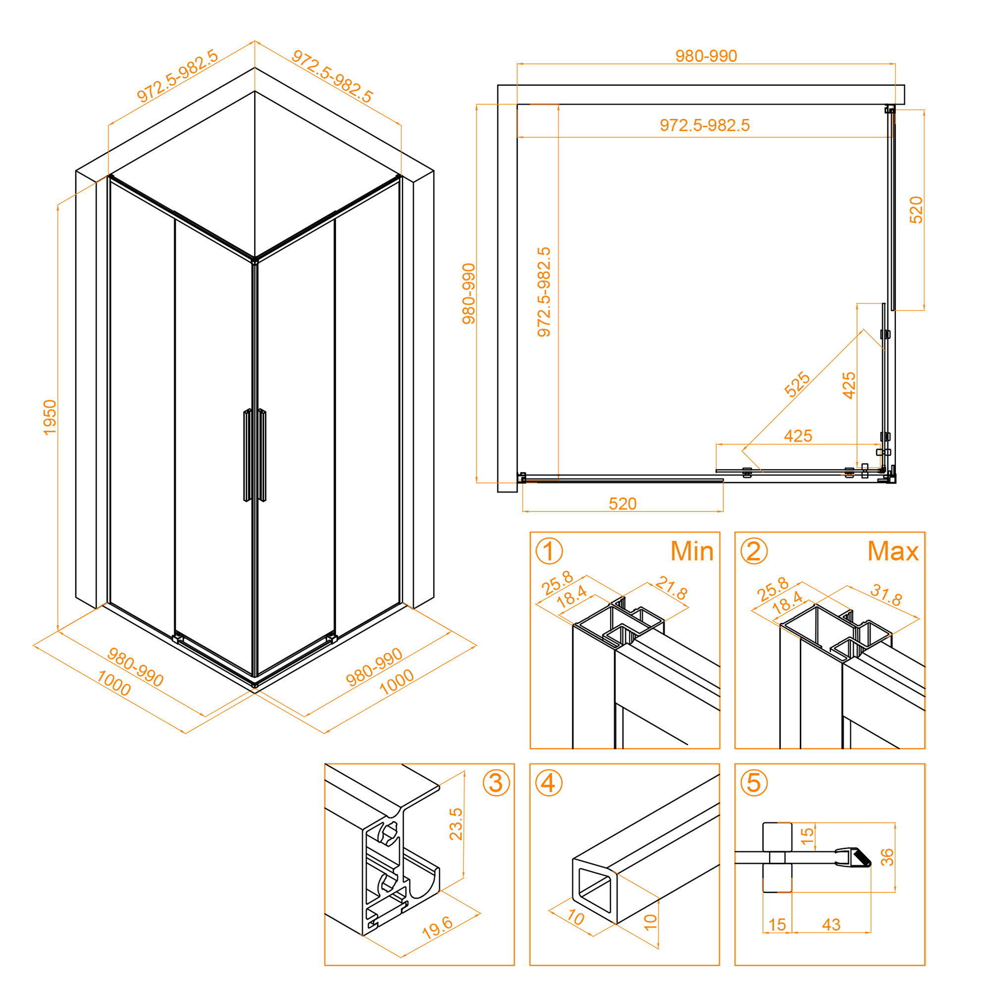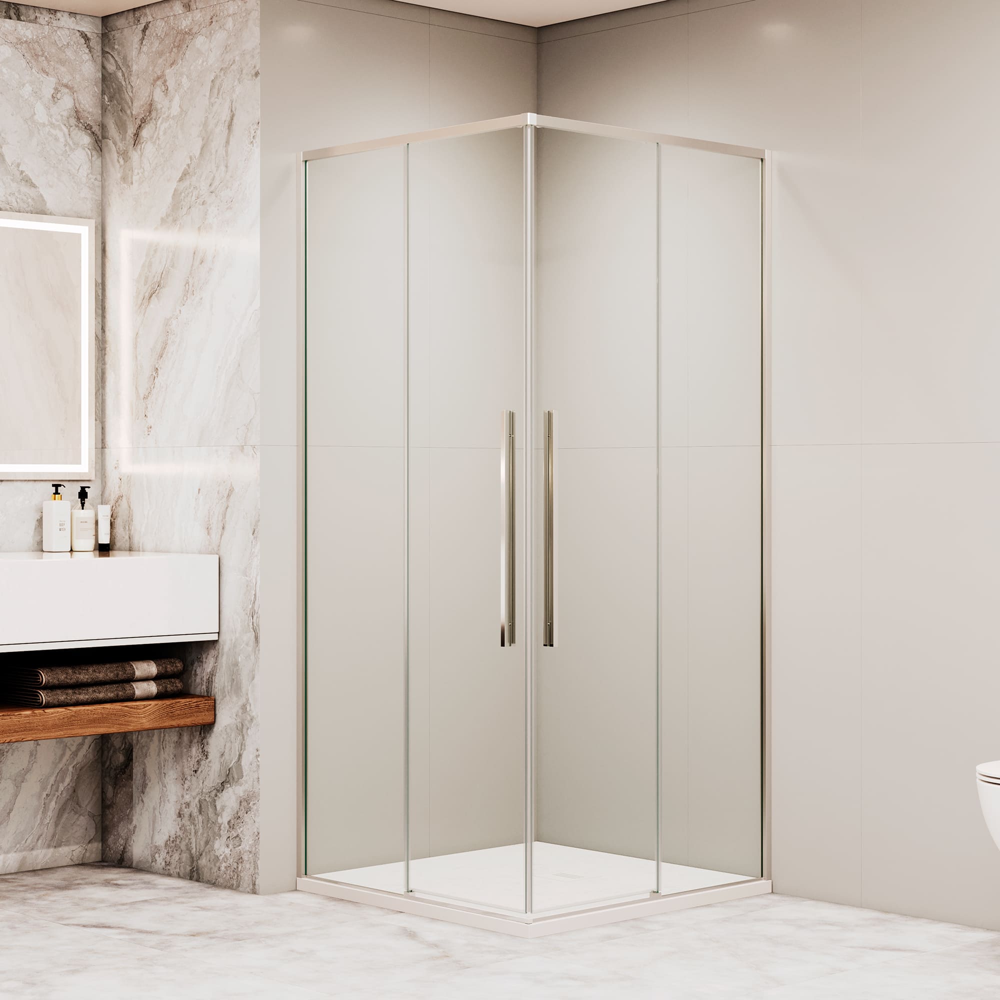 Душевой уголок квадратный, две раздвижные двери с угла. Трап или поддон приобретается отдельно.