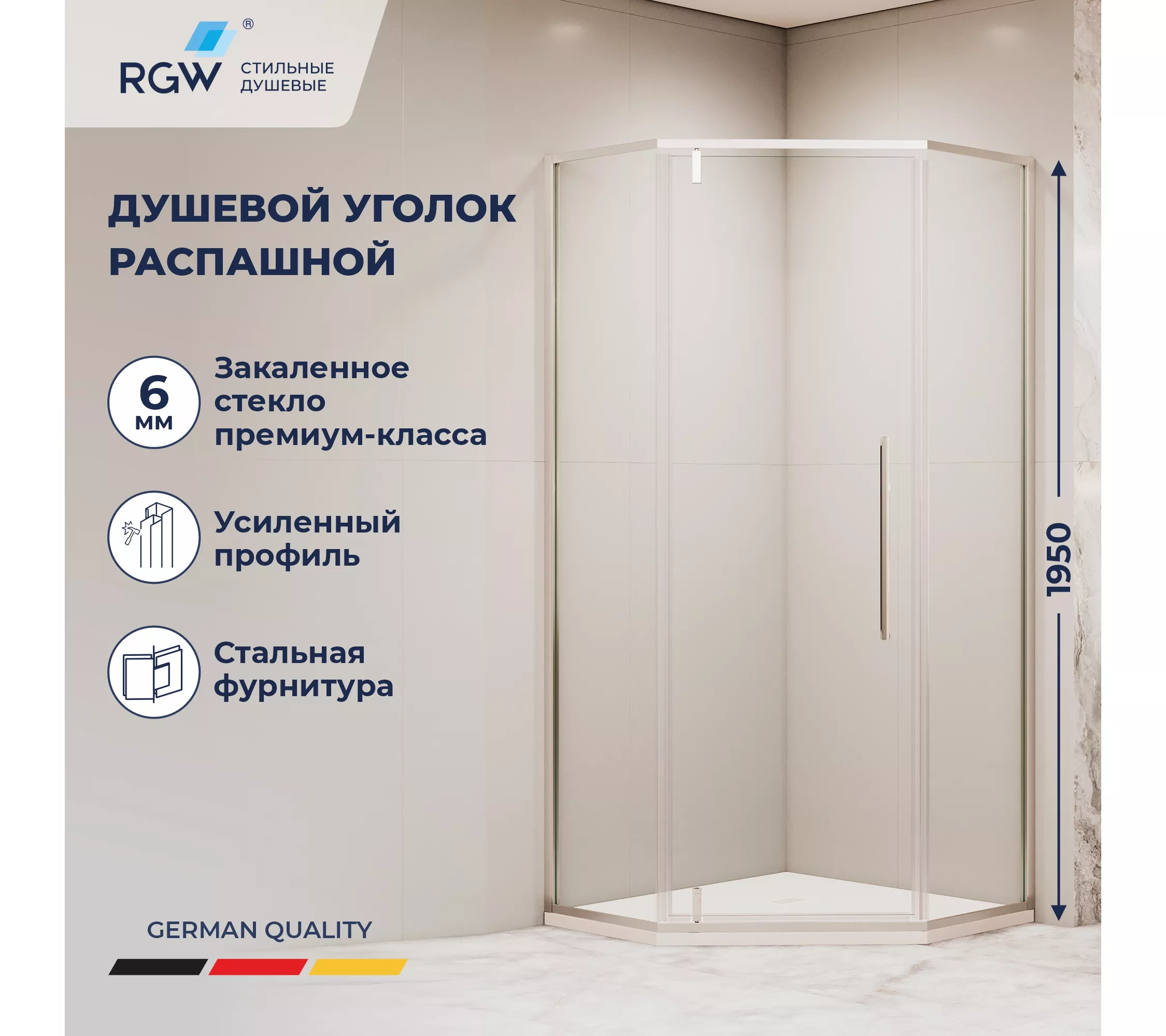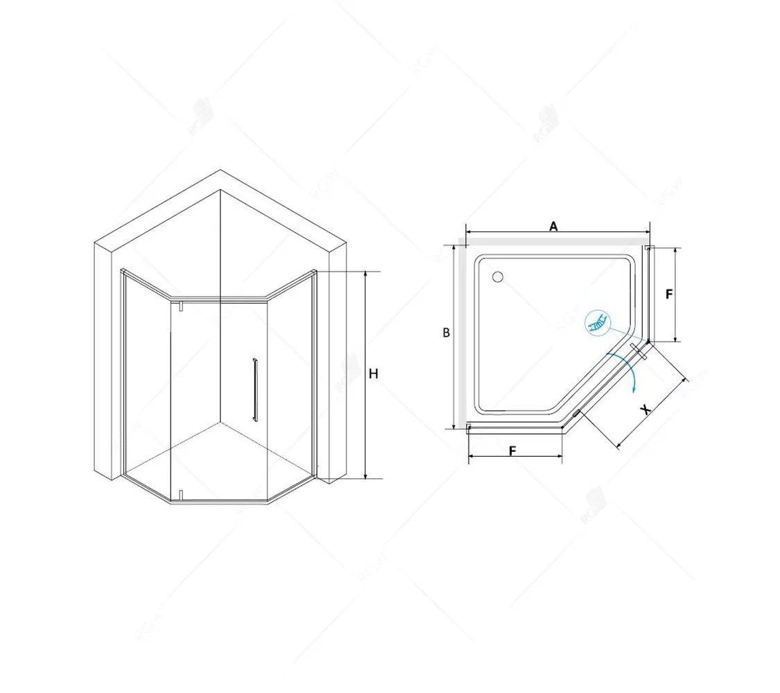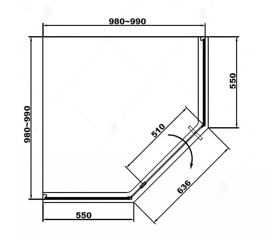 Душевой уголок трапеция с распашной дверью. Трап или поддон приобретается отдельно.